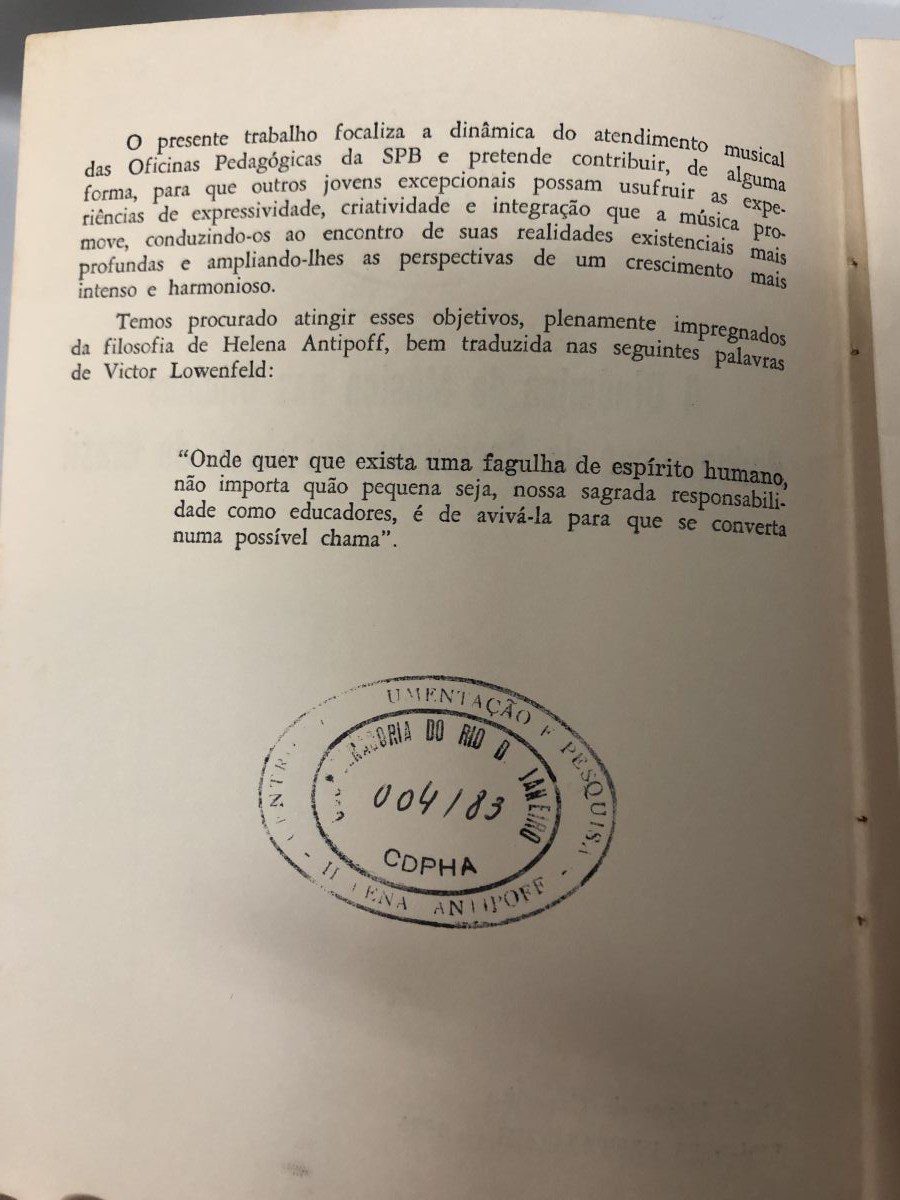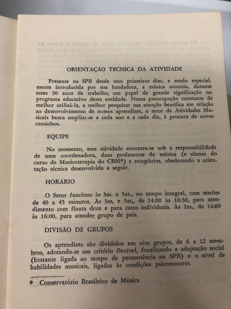 Título: A dinâmica da música nas oficinas pedagógicas da Sociedade Pestalozzi do Brasil