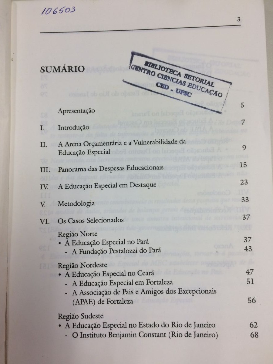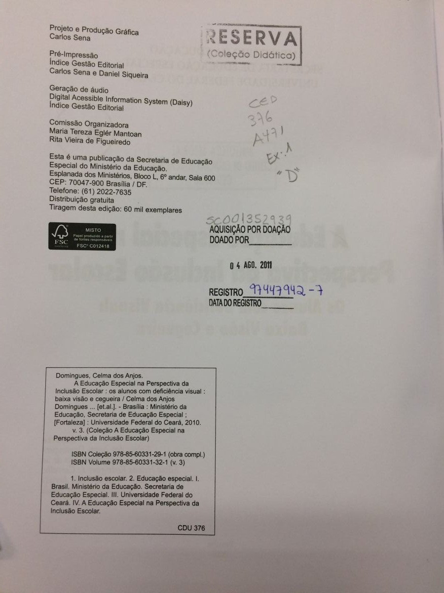 Título: A educação especial na perspectiva da inclusão escolar: o aluno com deficiência visual: baixa visão e cegueira