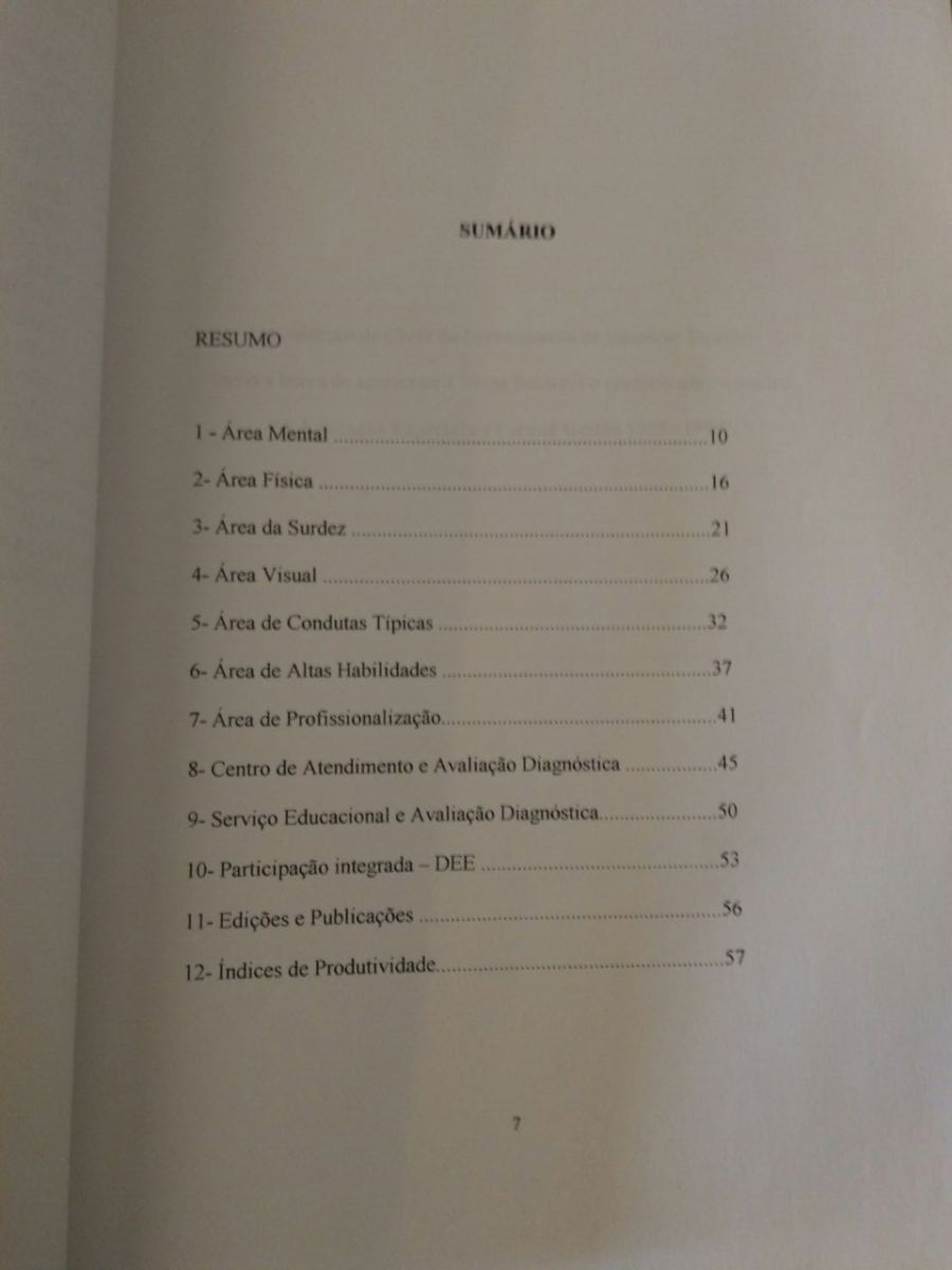 Editora: Secretaria de Estado da Educação; Departamento de Educação Especial