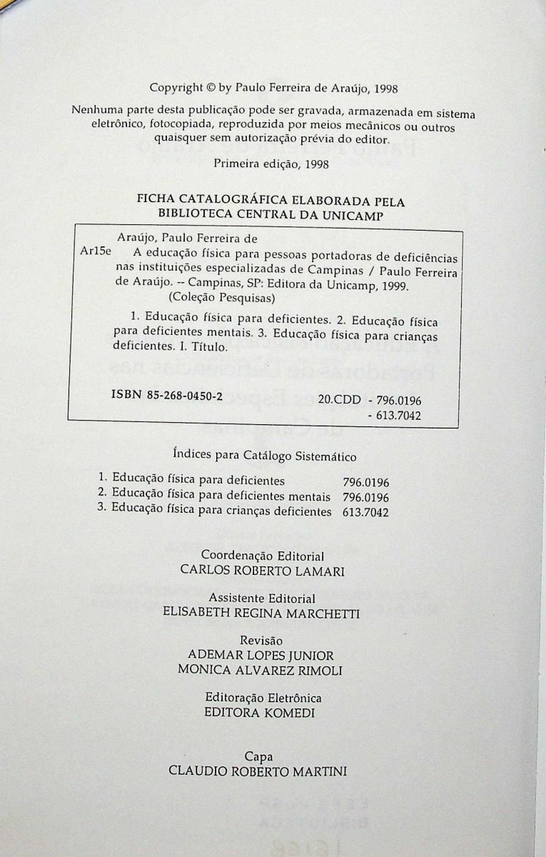 Título: A educação física para pessoas portadoras de deficiências nas instituições especializadas de Campinas