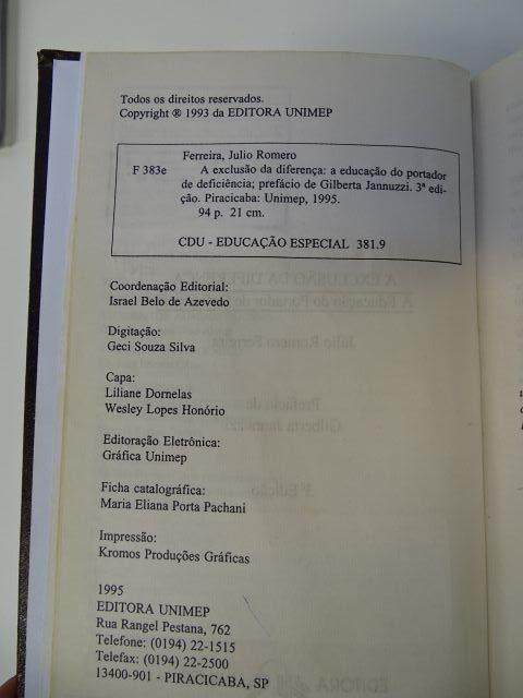Título: A exclusão da diferença: a educação do portador de deficiência