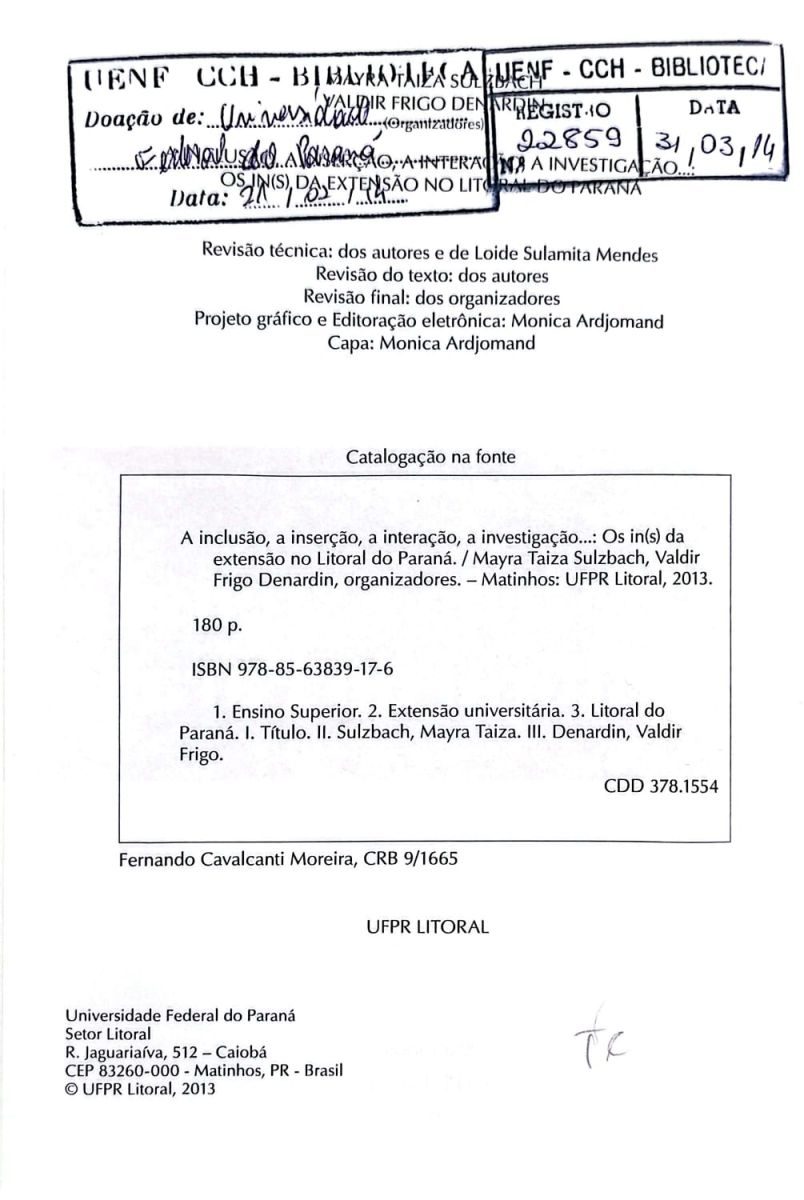 Título: A inclusão; a inserção; a interação; a investigação…: os in(s) da extensão no Litoral do Paraná