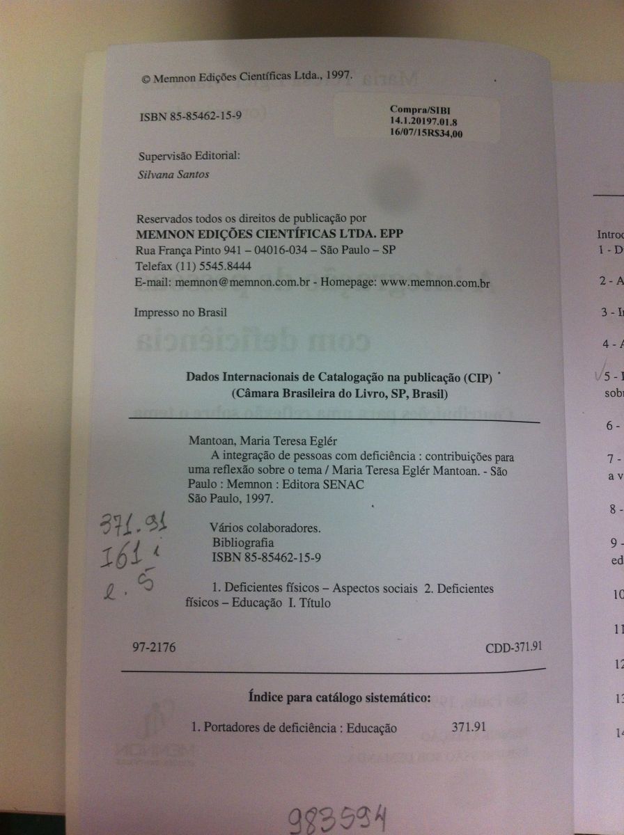 Título: A integração de pessoas com deficiência: contribuições para uma reflexão sobre o tema