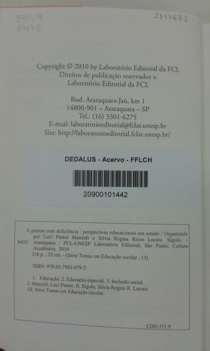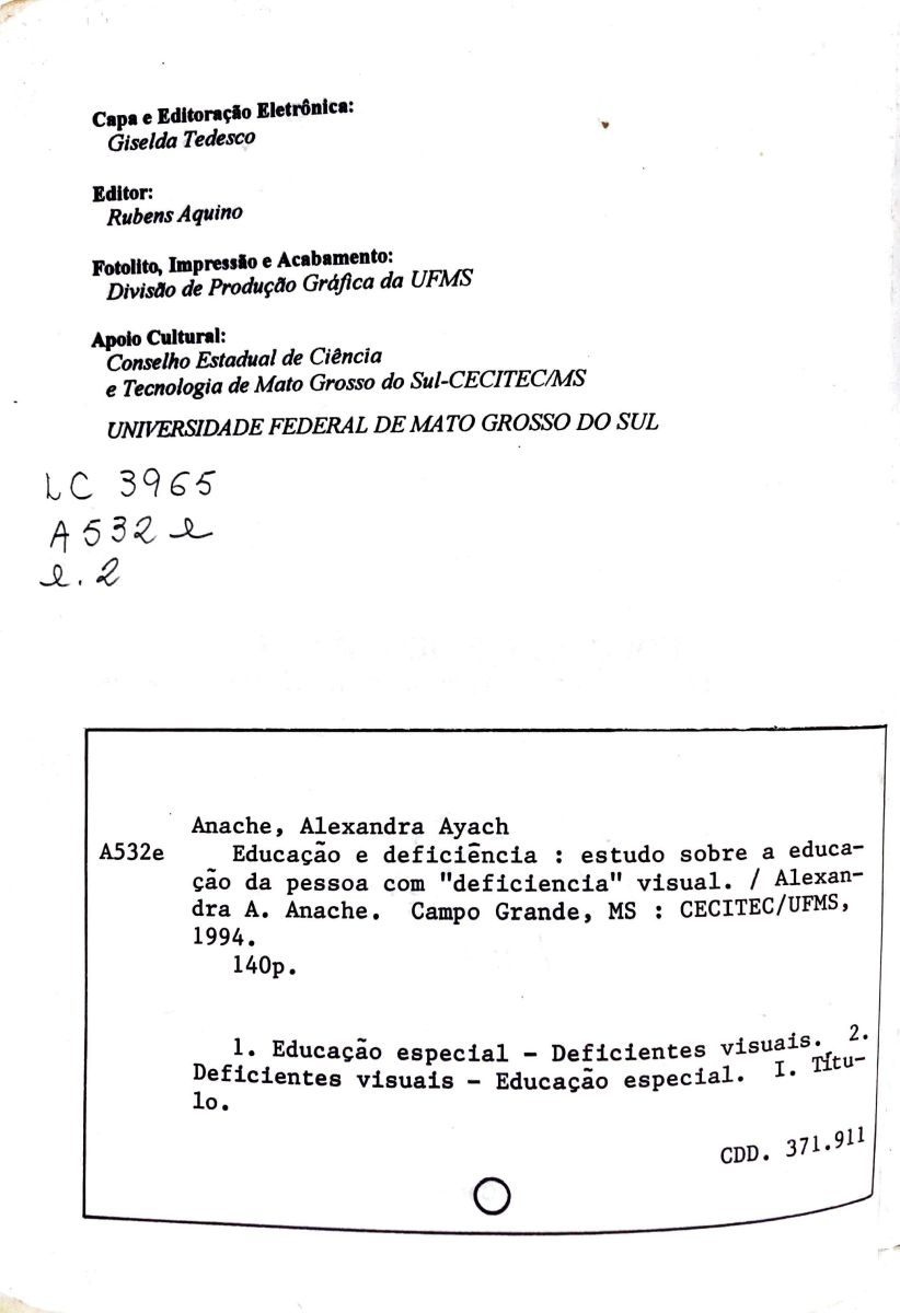 Título: A pessoa com deficiência: perspectivas educacionais em estudo