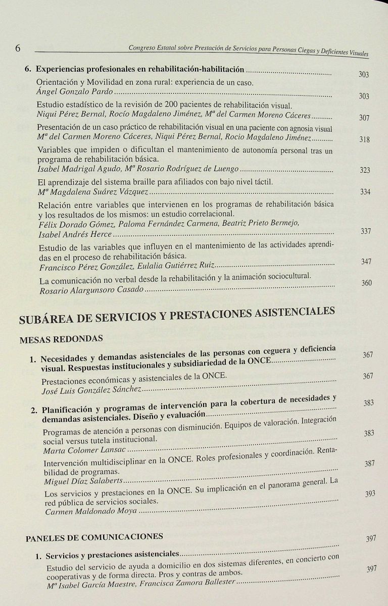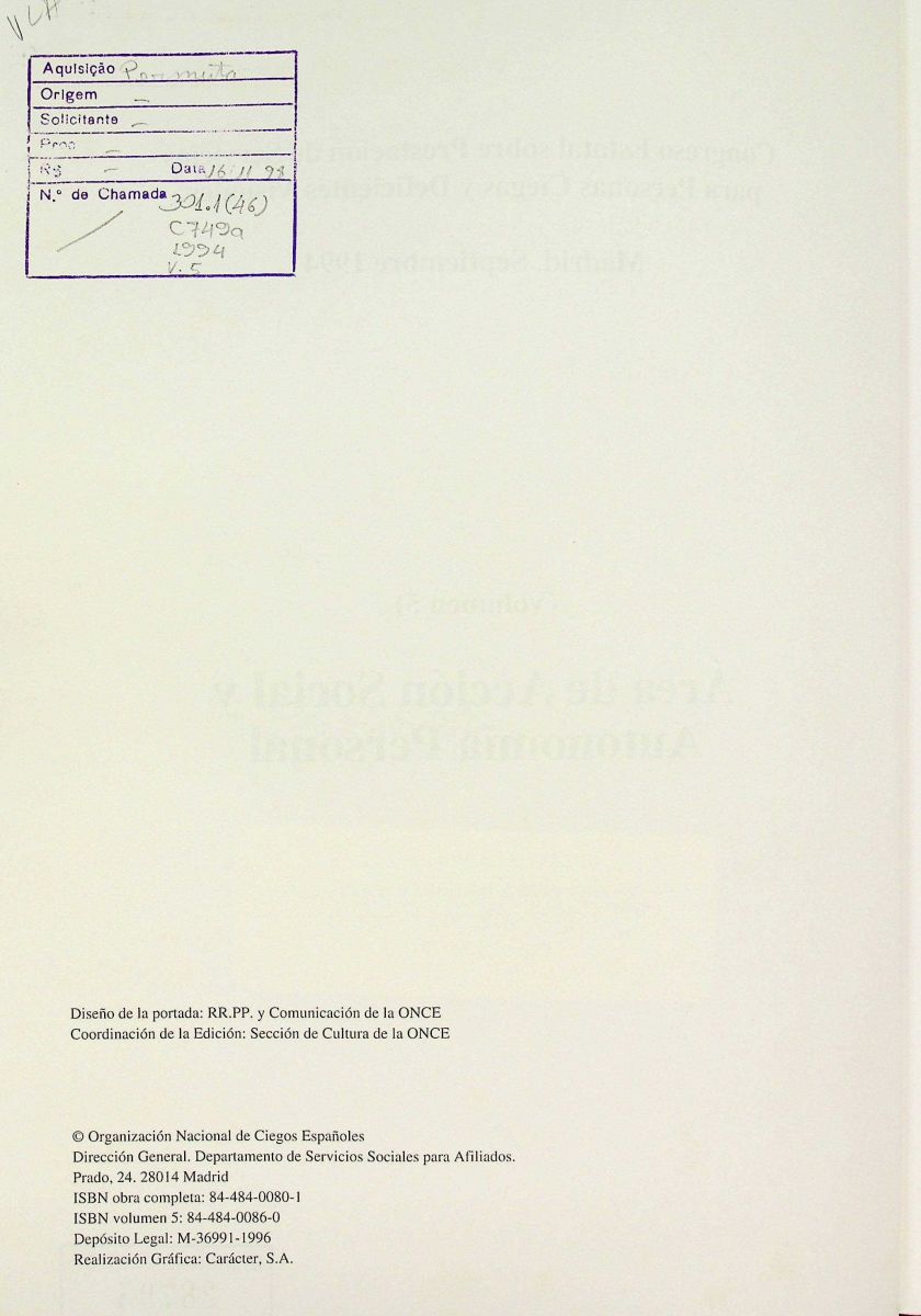 Título: Actas del Congreso Estatal sobre Prestación de Servicios para Personas Ciegas y Deficientes Visuales: area de acción social y autonomía personal
