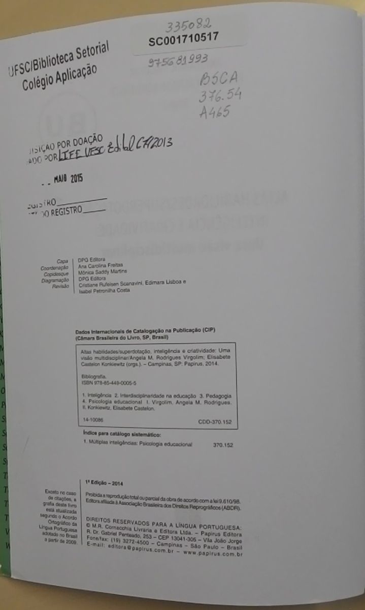Título: Altas habilidades/superdotação: inteligência e criatividade: uma visão multidisciplinar