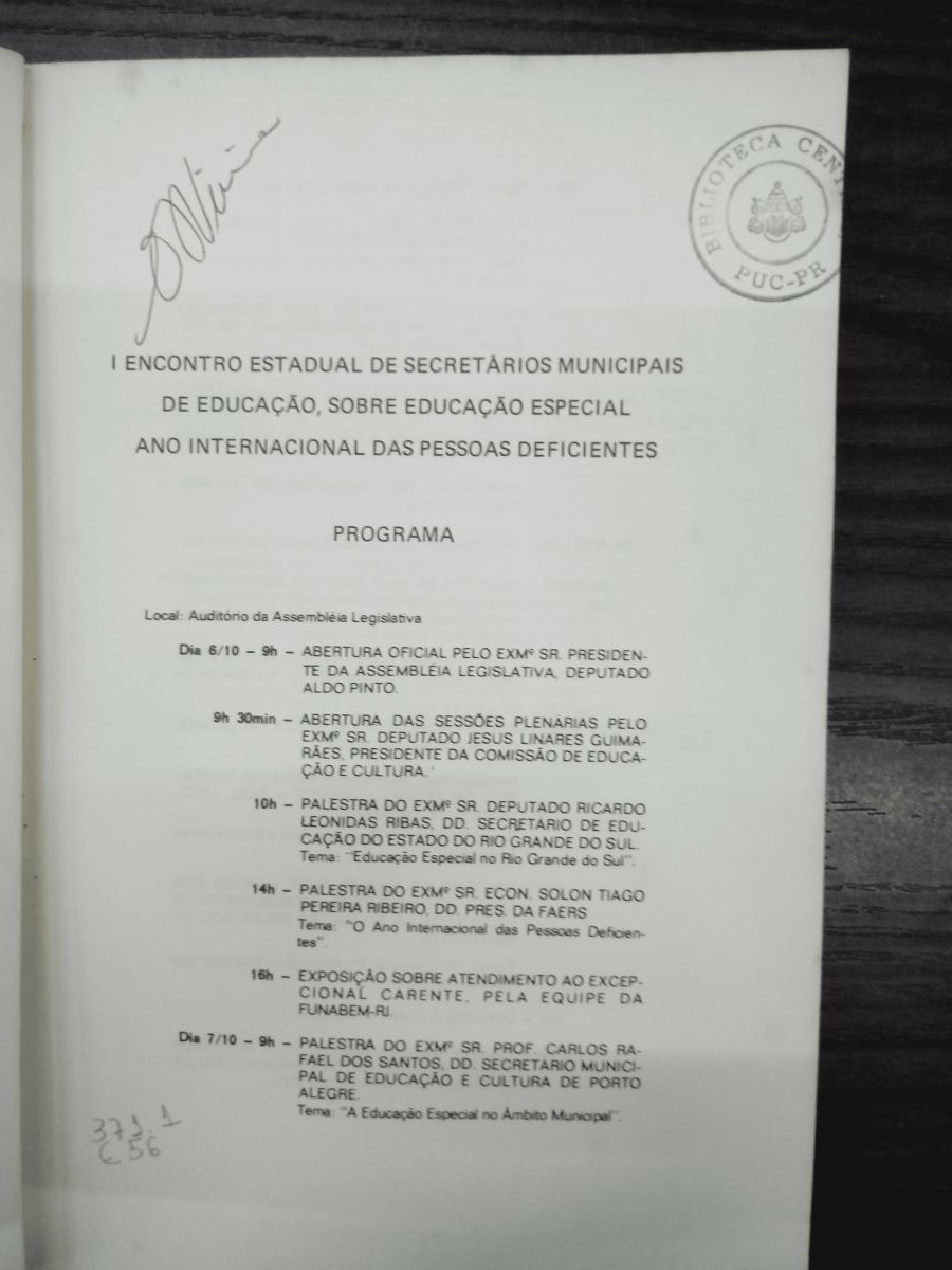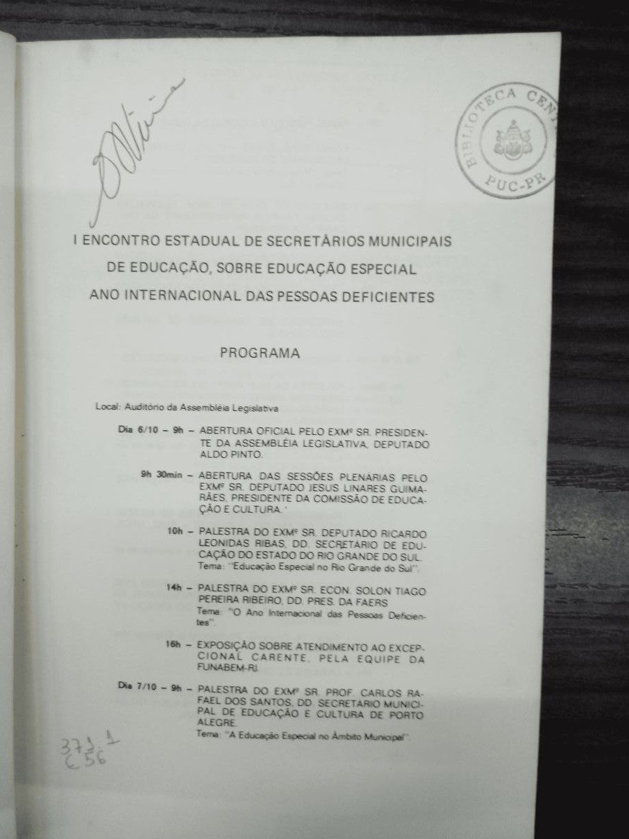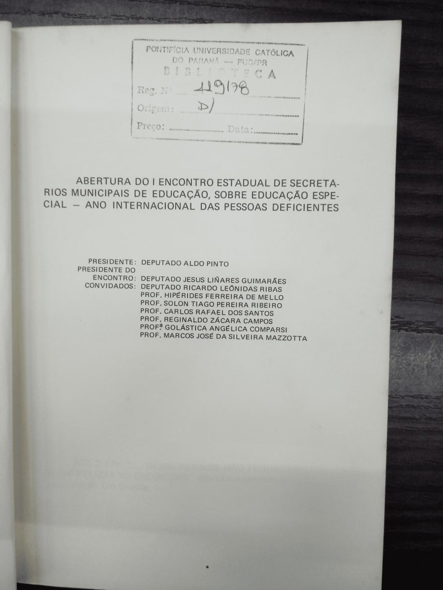 Título: Anais do 1º Encontro estadual de secretários municipais de educação sobre educação especial