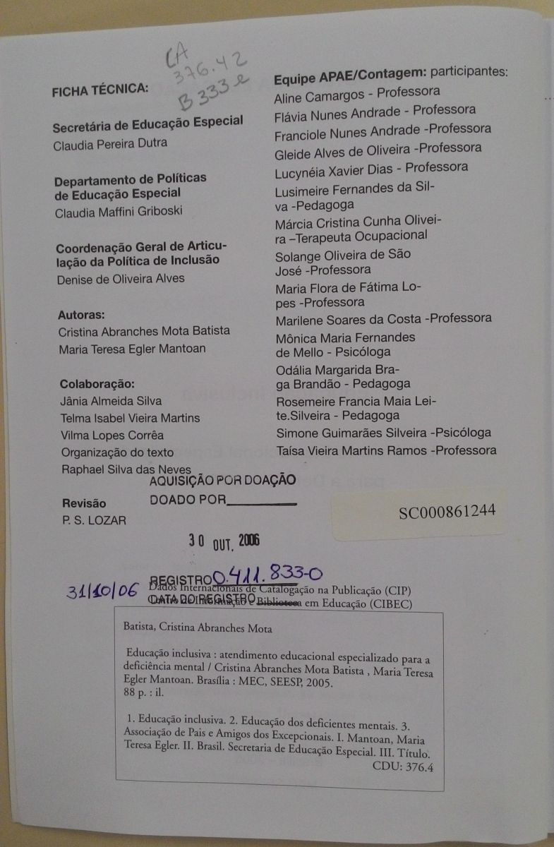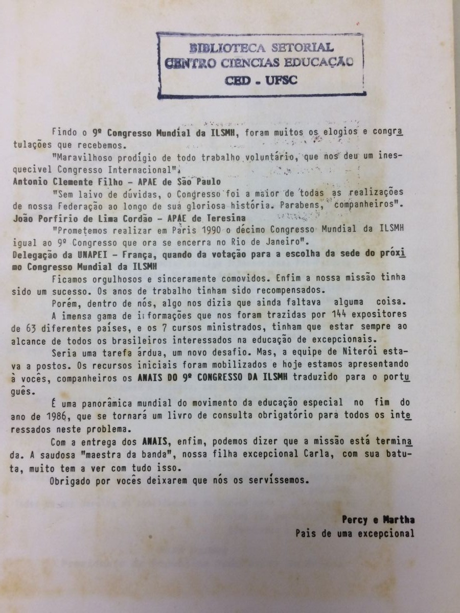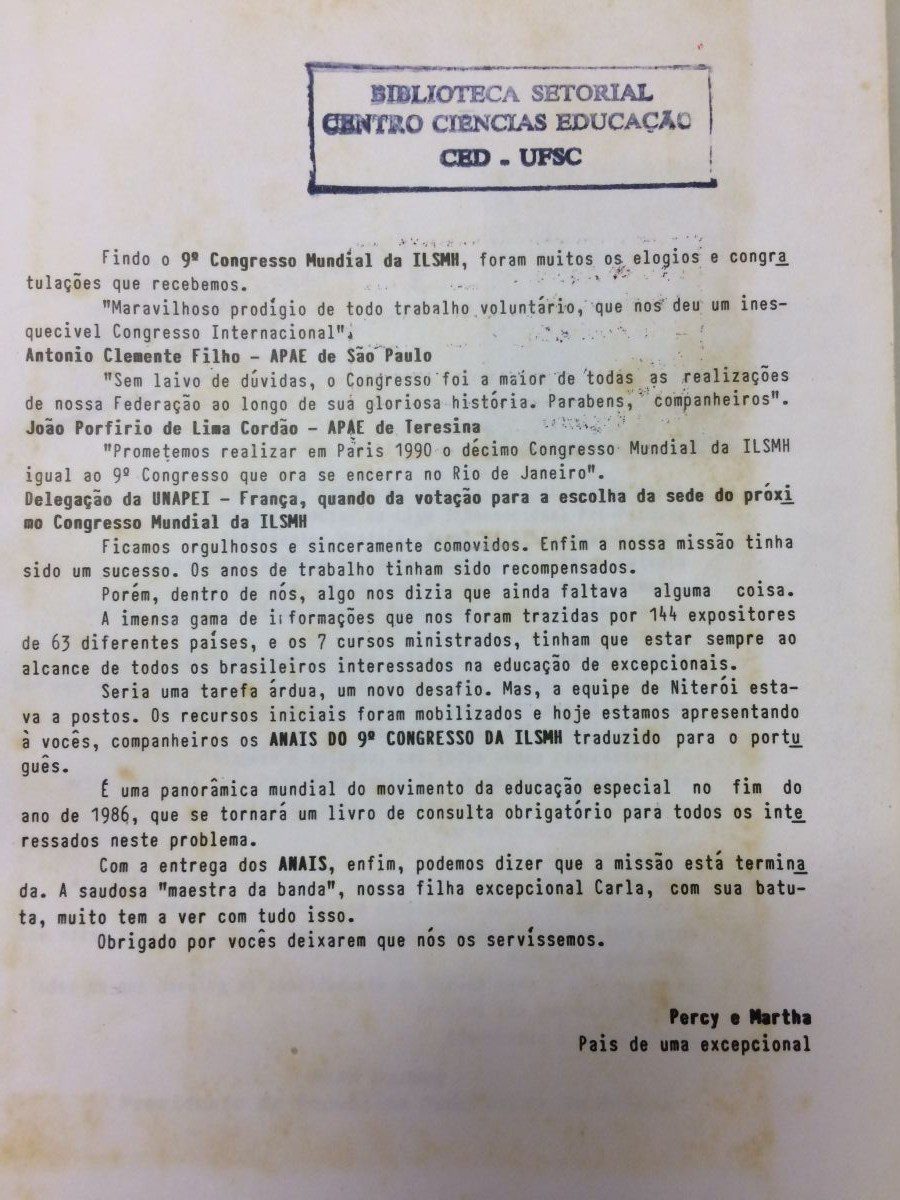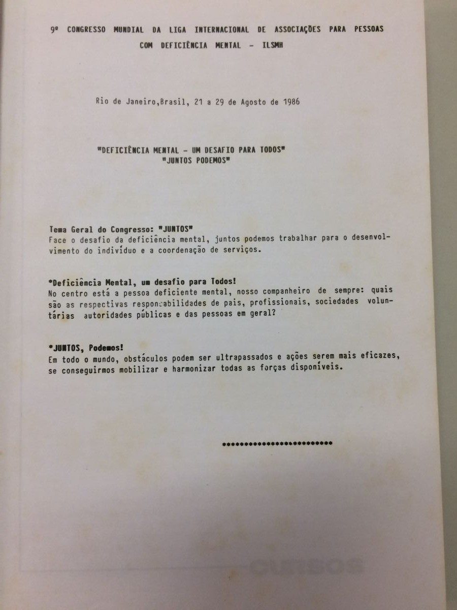 Título: Anais do 9º Congresso mundial da Liga Internacional de Associações para Pessoas com Deficiência Mental