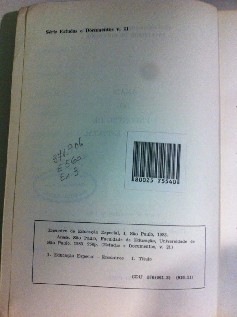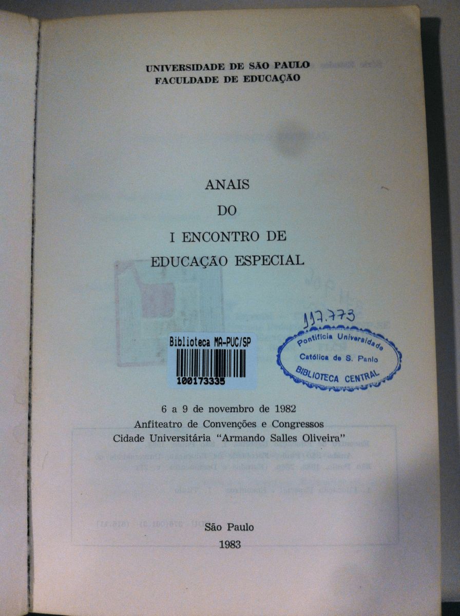 Título: Anais do I Encontro de educação especial