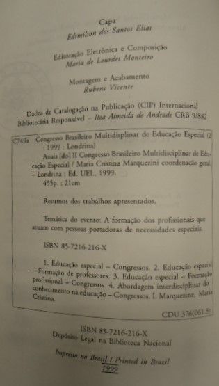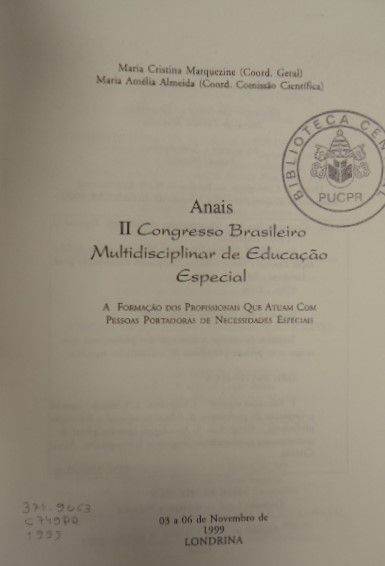 Título: Anais do II Congresso brasileiro multidisciplinar de educação especial