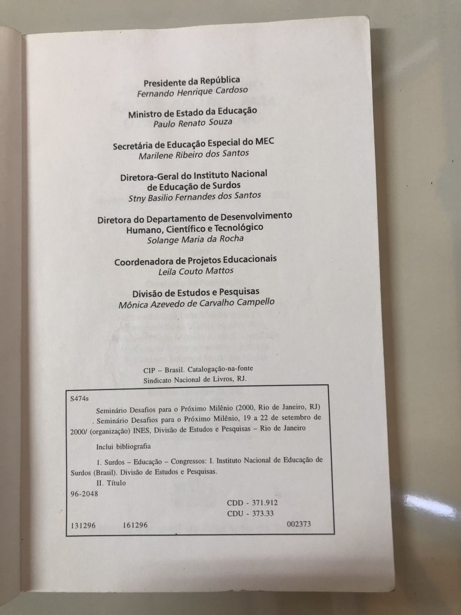 Autor/Organizador: Ministério da Educação; Instituto Nacional de Educação de Surdos