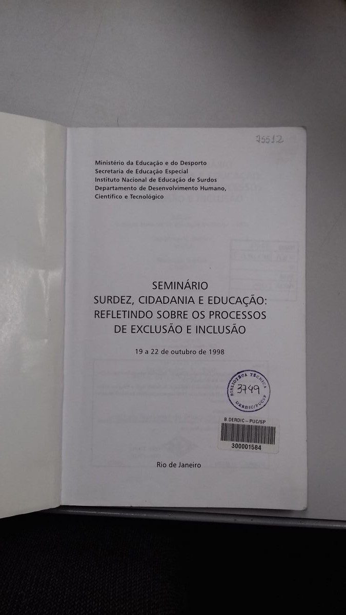 Título: Anais do Seminário: Surdez, cidadania e educação: refletindo sobre os processos de exclusão e inclusão