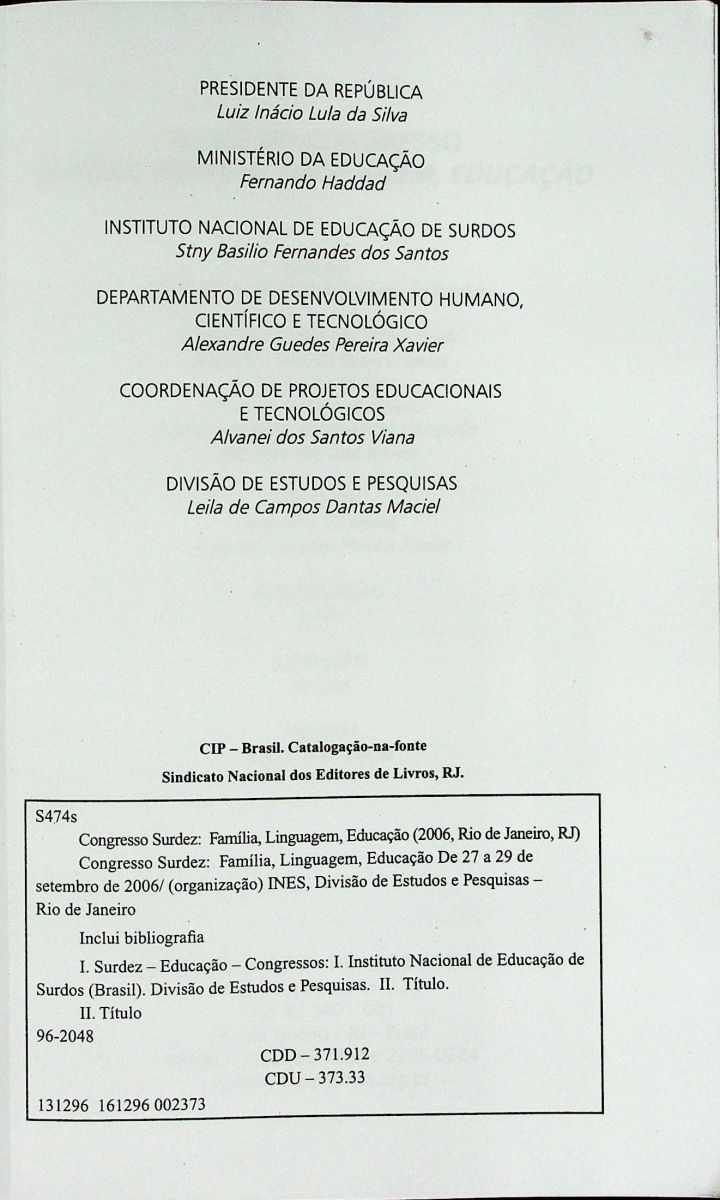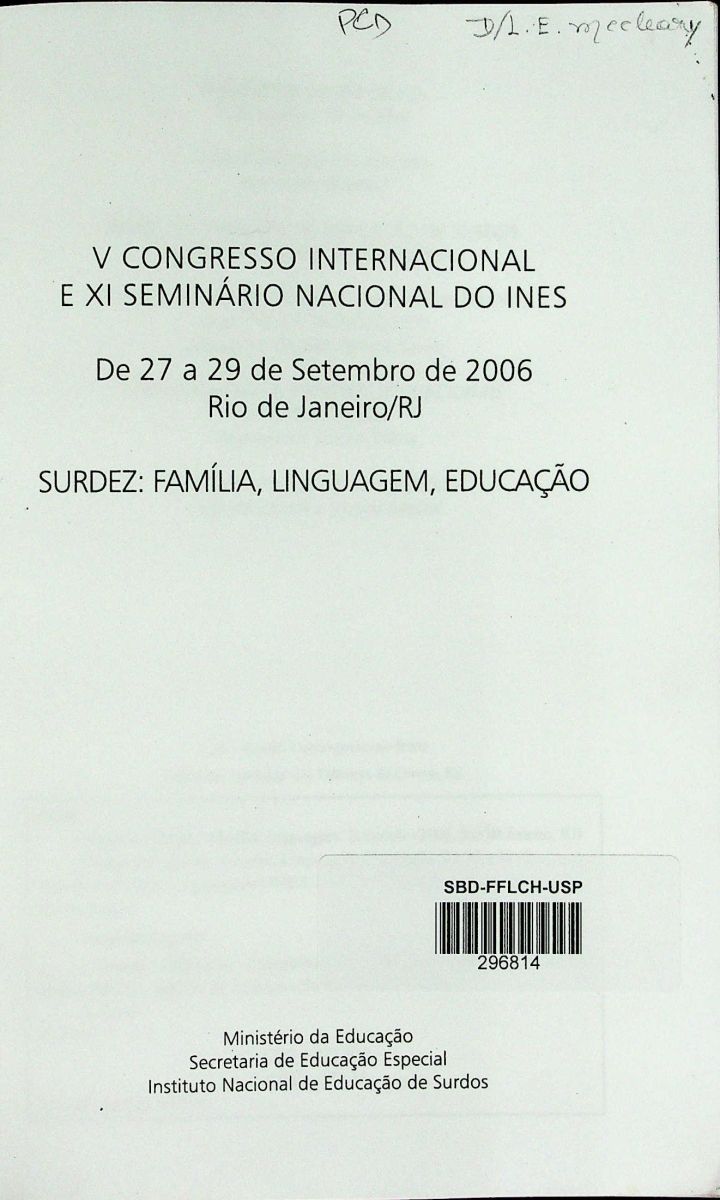 Título: Anais do V Congresso Internacional e XI Congresso Nacional do INES: surdez família, linguagem, educação
