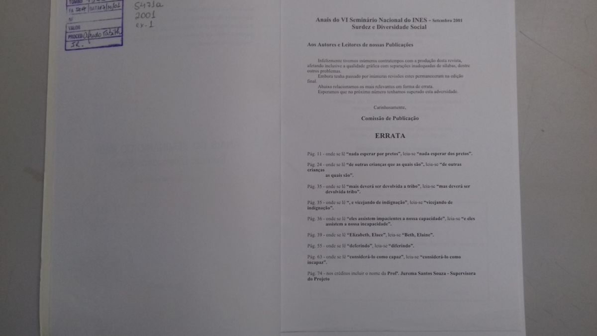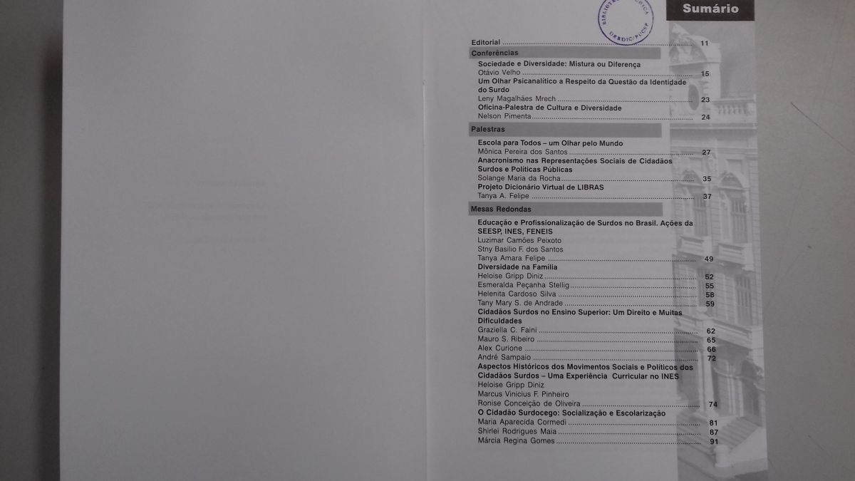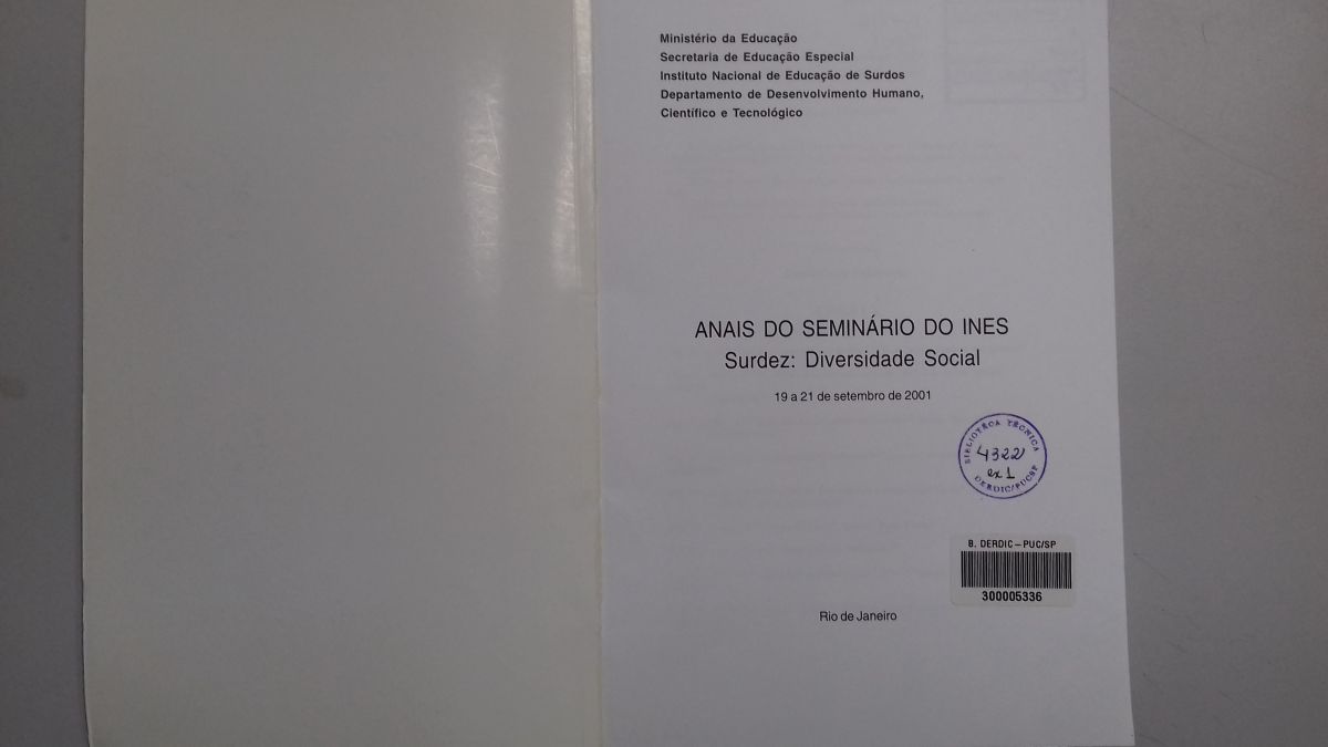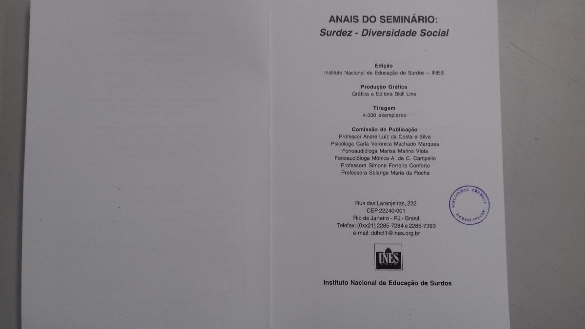 Título: Anais do VI Seminário nacional do INES: surdez e diversidade social