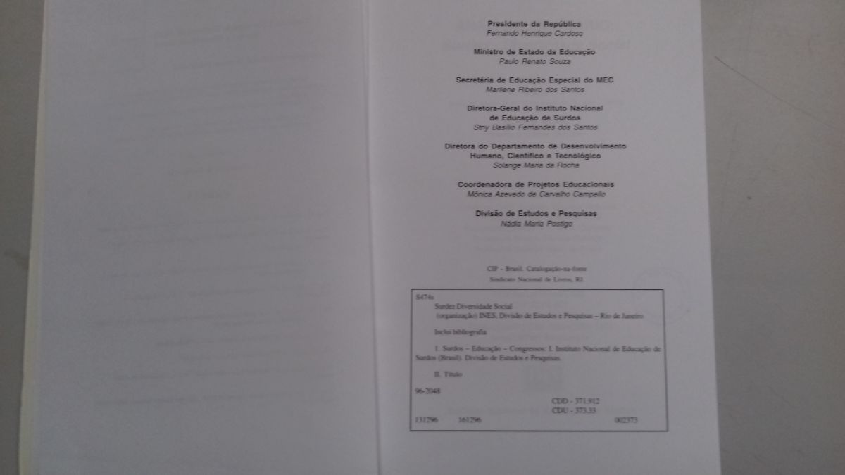 Autor/Organizador: Instituto Nacional de Educação de Surdos