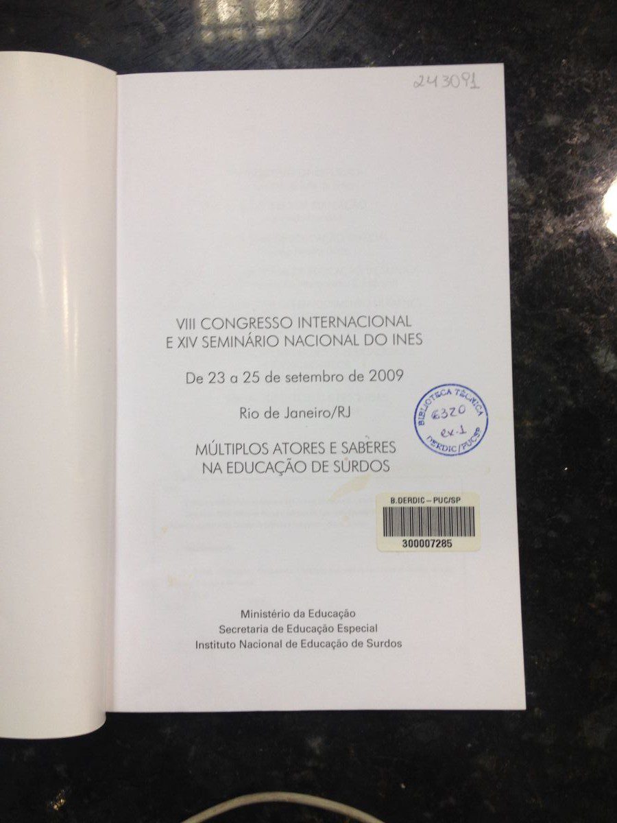 Título: Anais do VIII Congresso internacional e XIV Seminário internacional do INES: múltiplos atores e saberes na educação de surdos