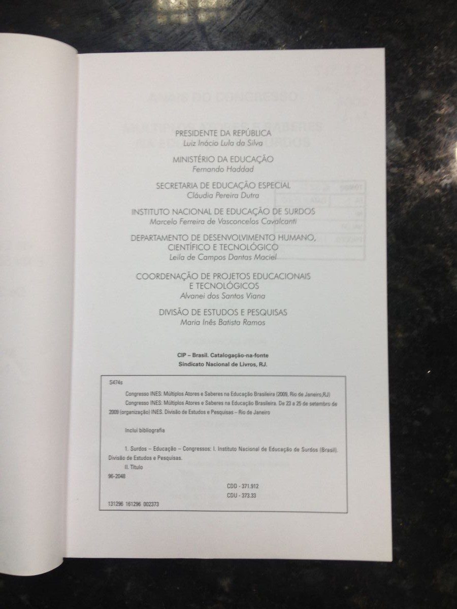 Autor/Organizador: Instituto Nacional de Educação de Surdos
