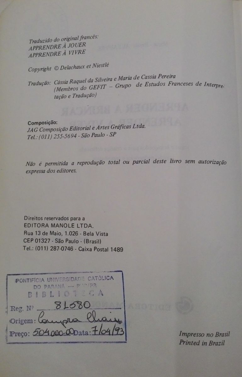 Título: Aprender a brincar, aprender a viver