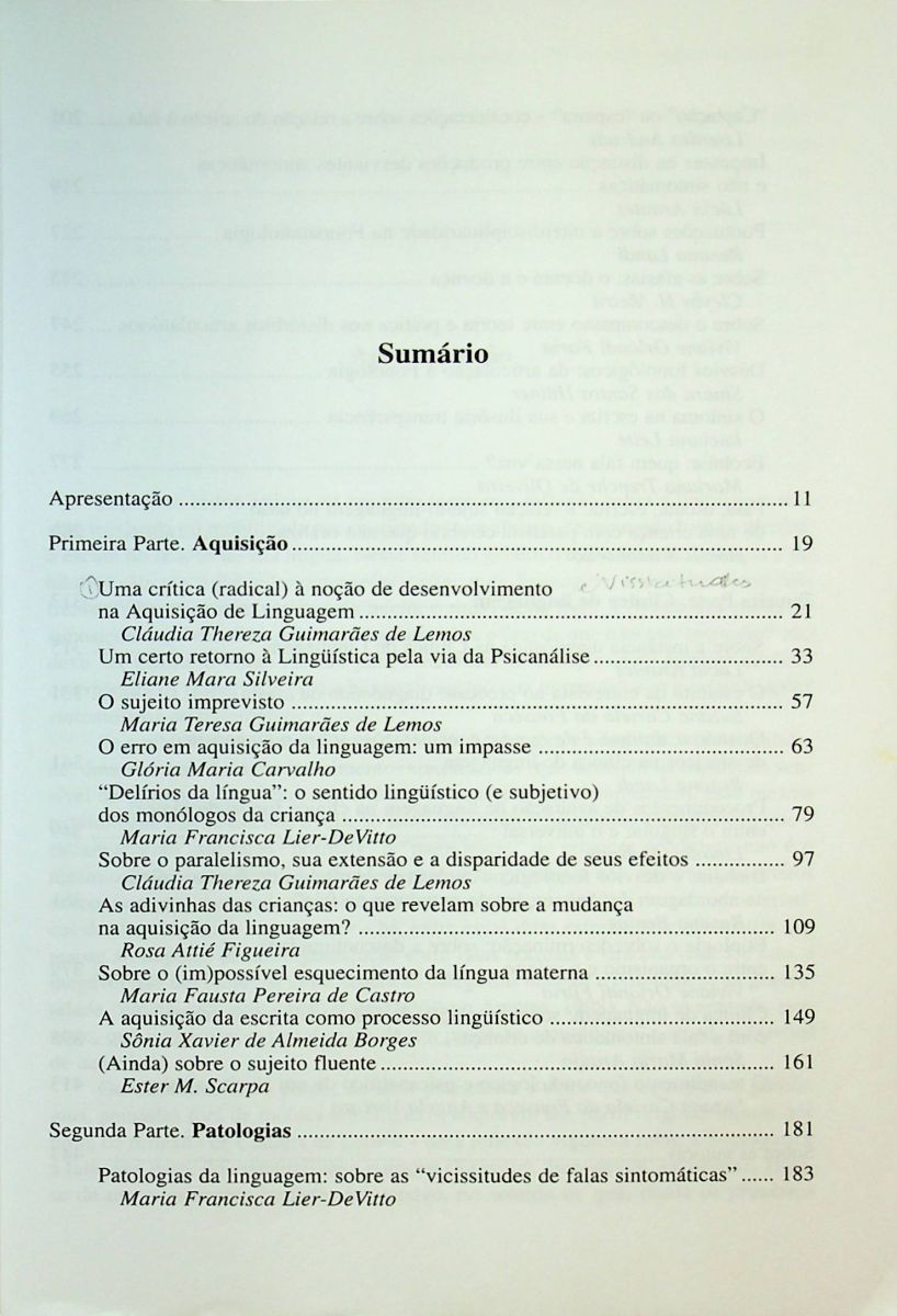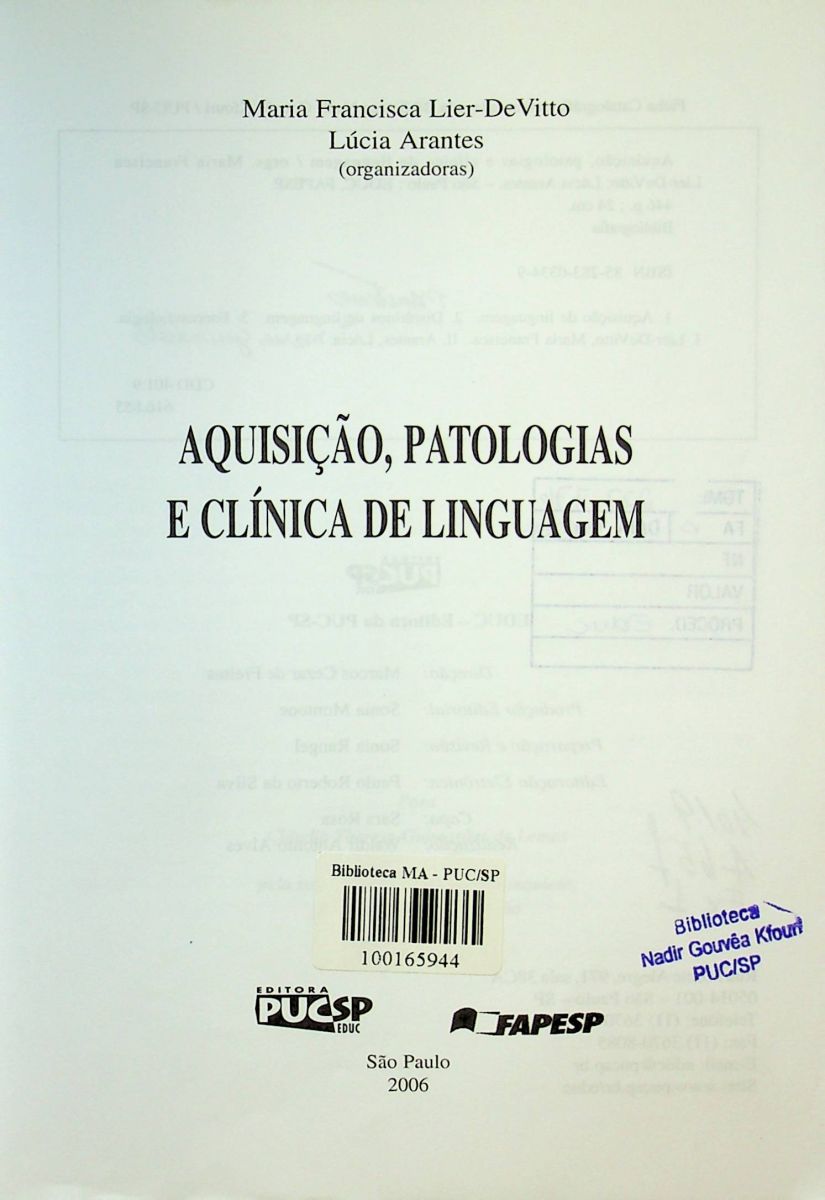 Título: Aquisicao, patologias e clinica de linguagem