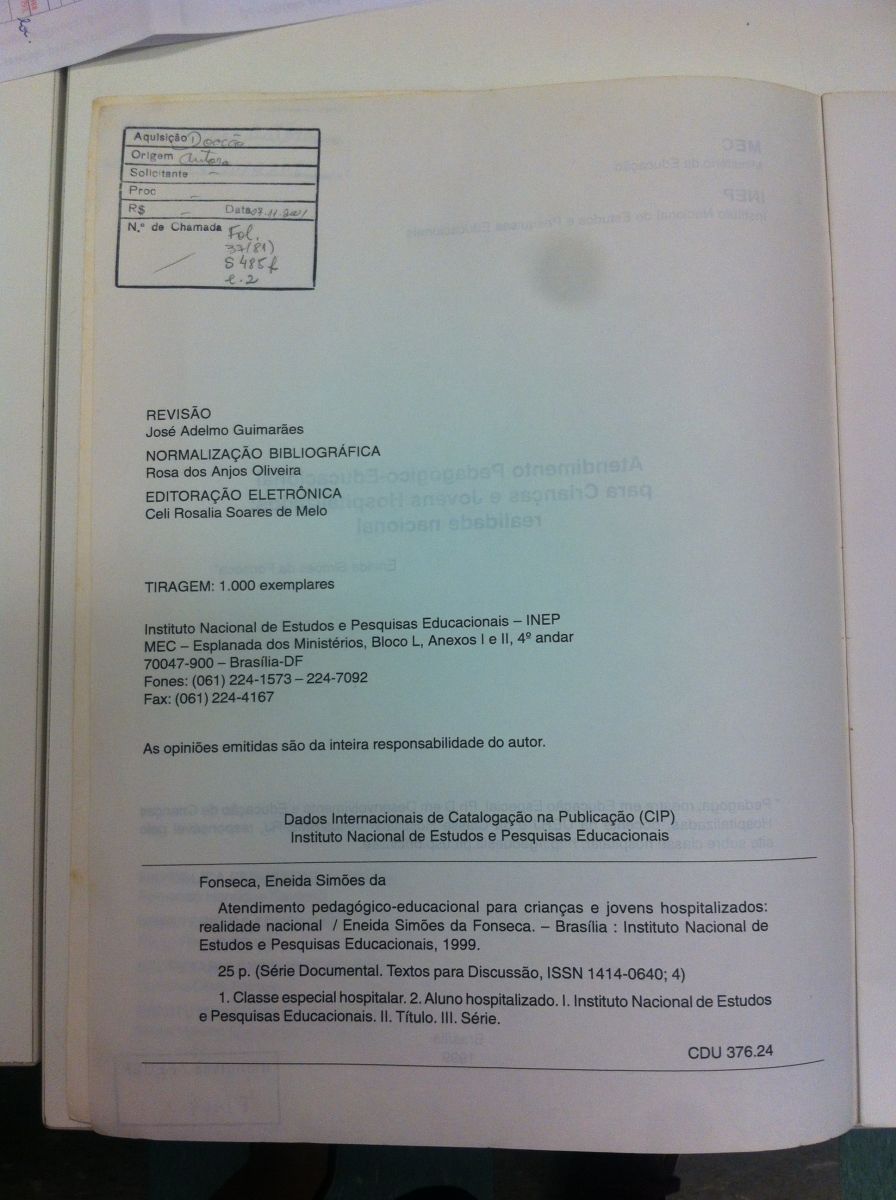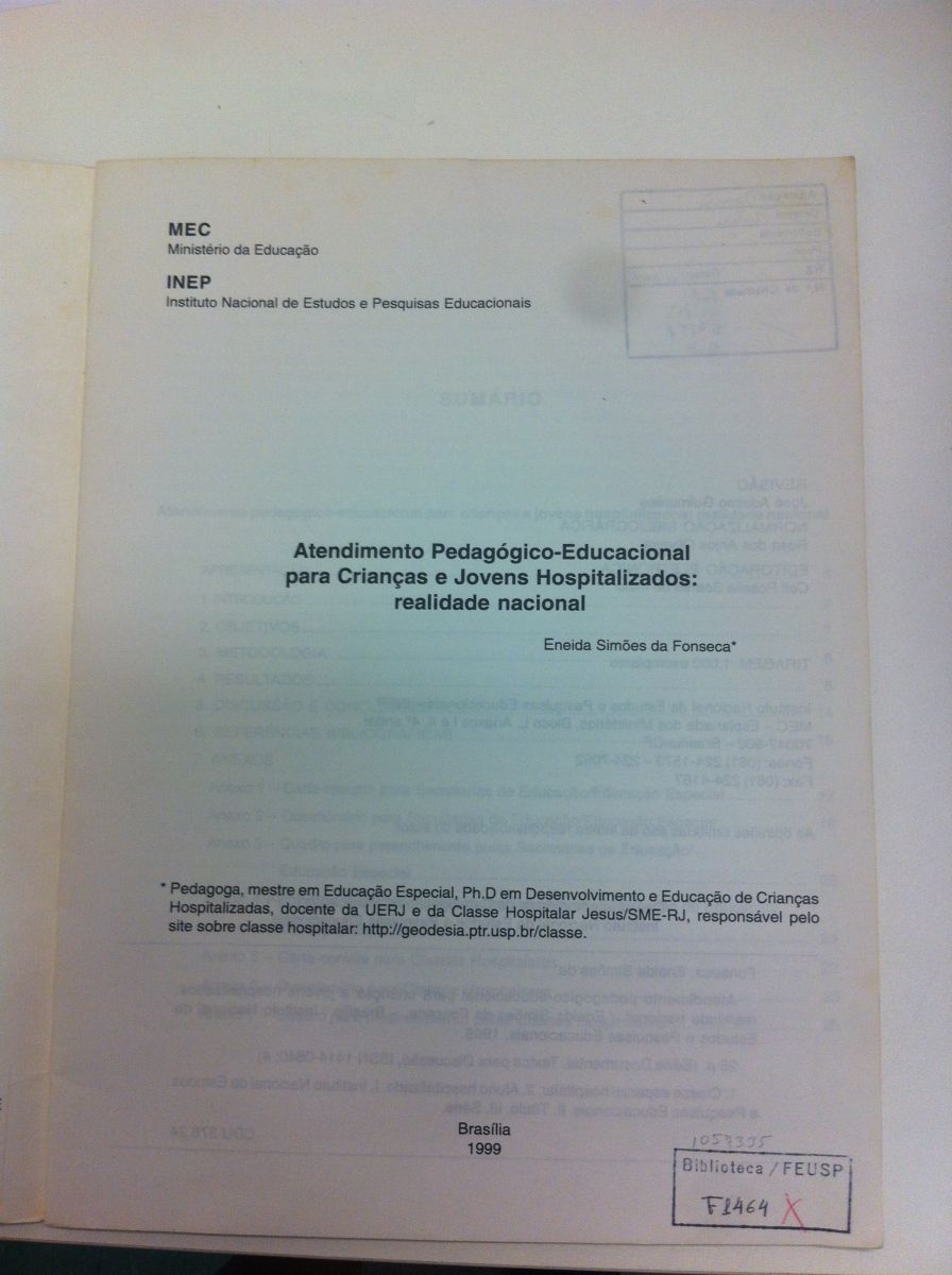 Título: Atendimento pedagógico-educacional para crianças e jovens hospitalizados