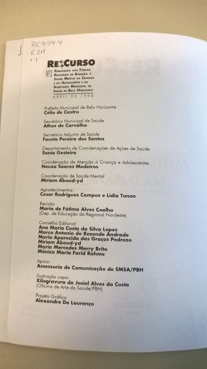 Autor/Organizador: Fóruns Regionais de Atenção à Saúde Mental da Criança e do Adolescente