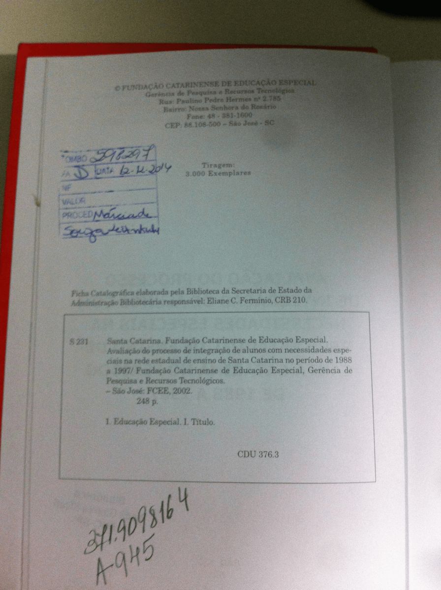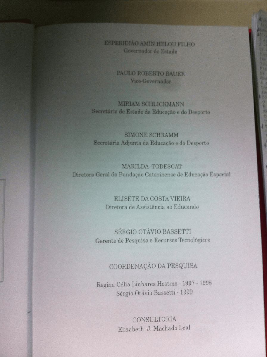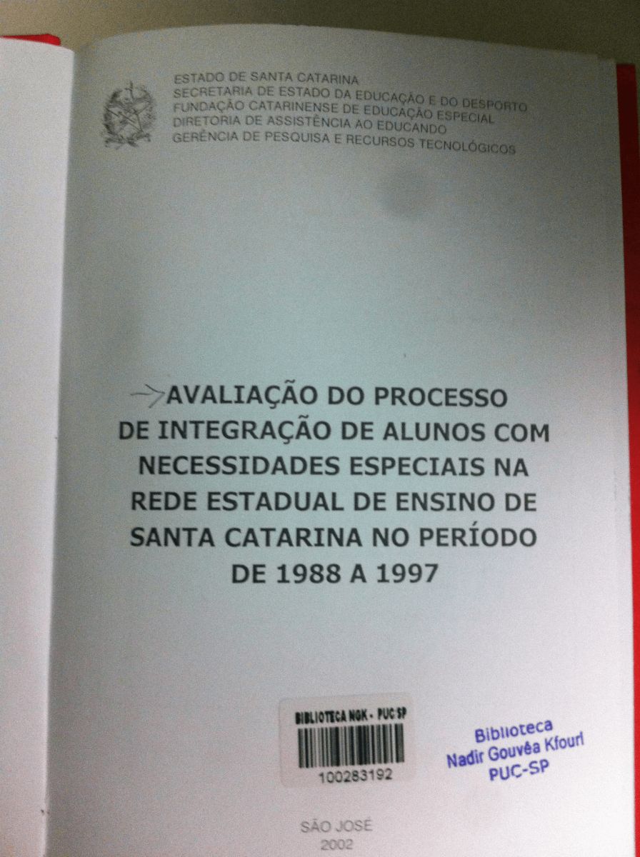 Título: Avaliação do processo de integração de alunos com necessidades especiais na rede estadual de ensino de Santa Catarina no período de 1988 a 1997