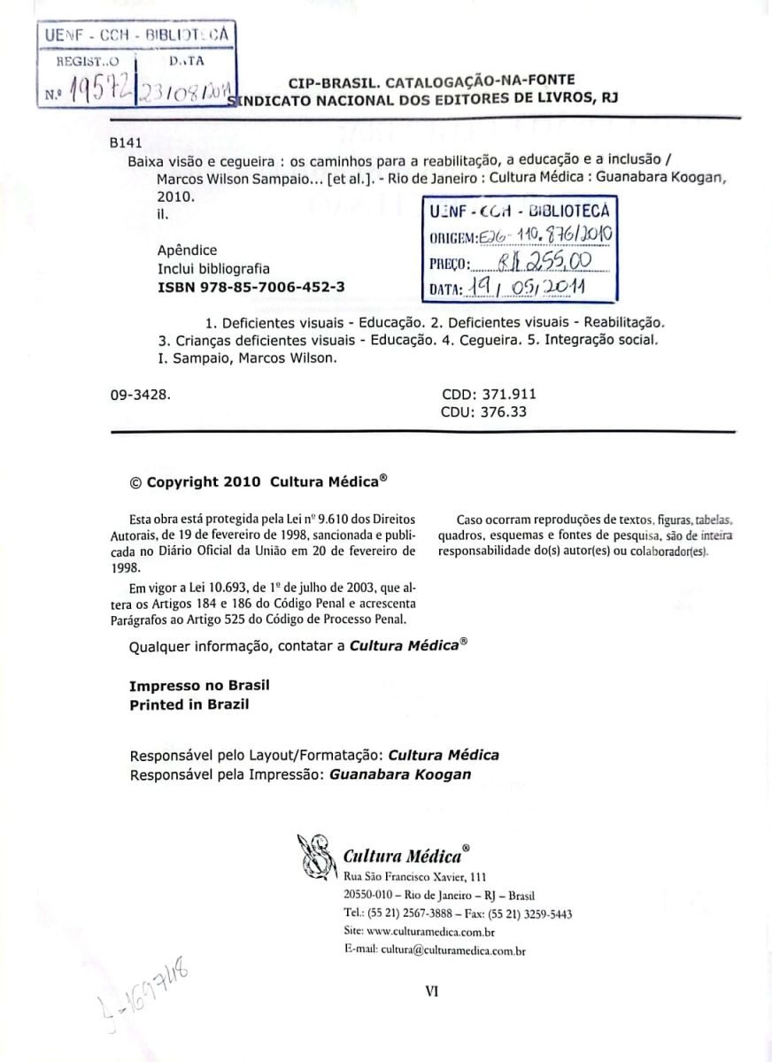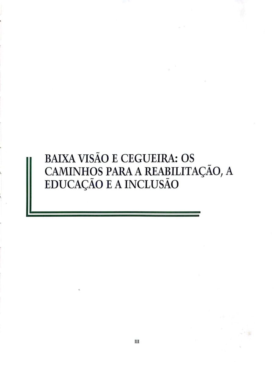 Título: Baixa visão e cegueira: os caminhos para a reabilitação; a educação e a inclusão