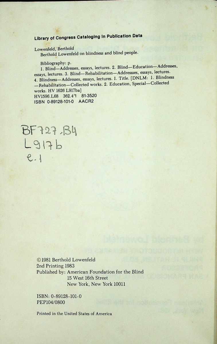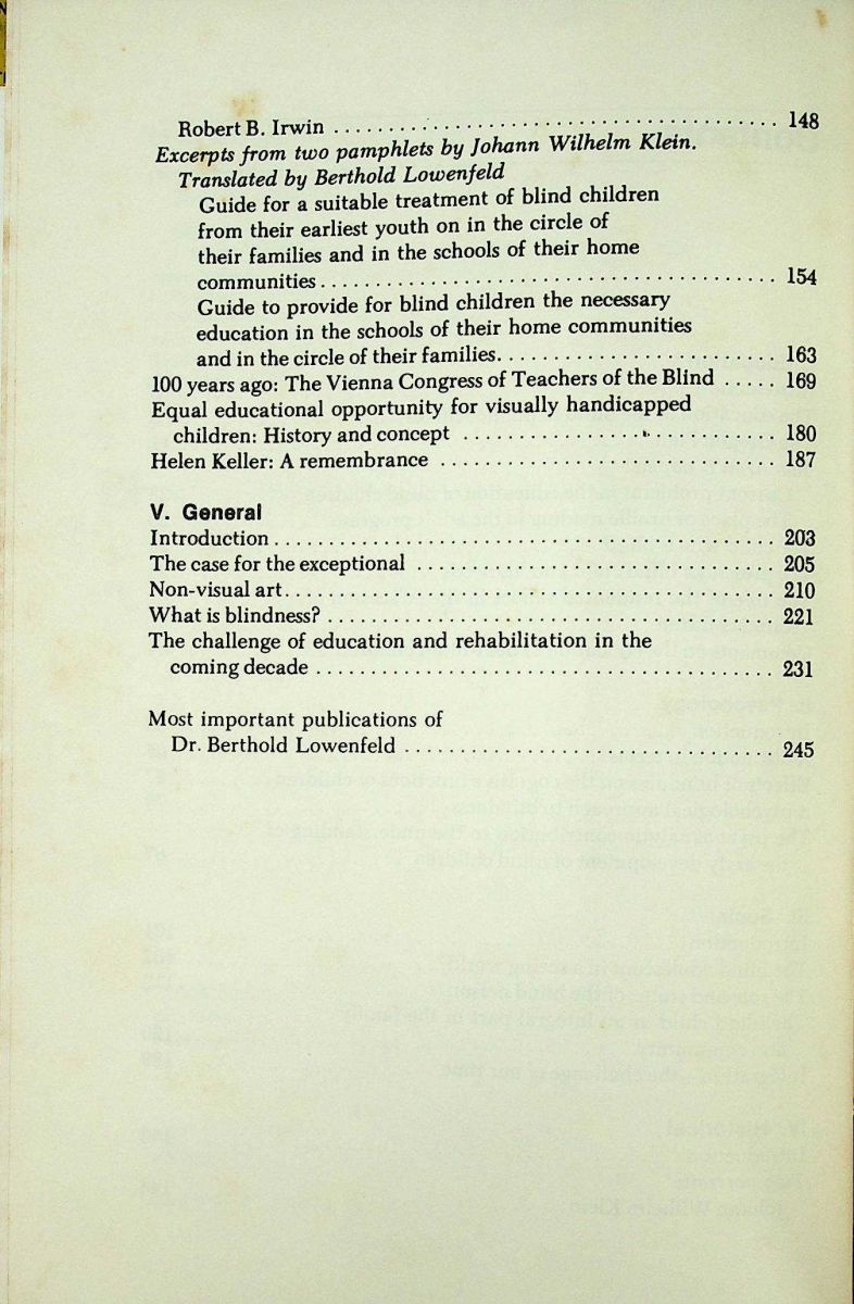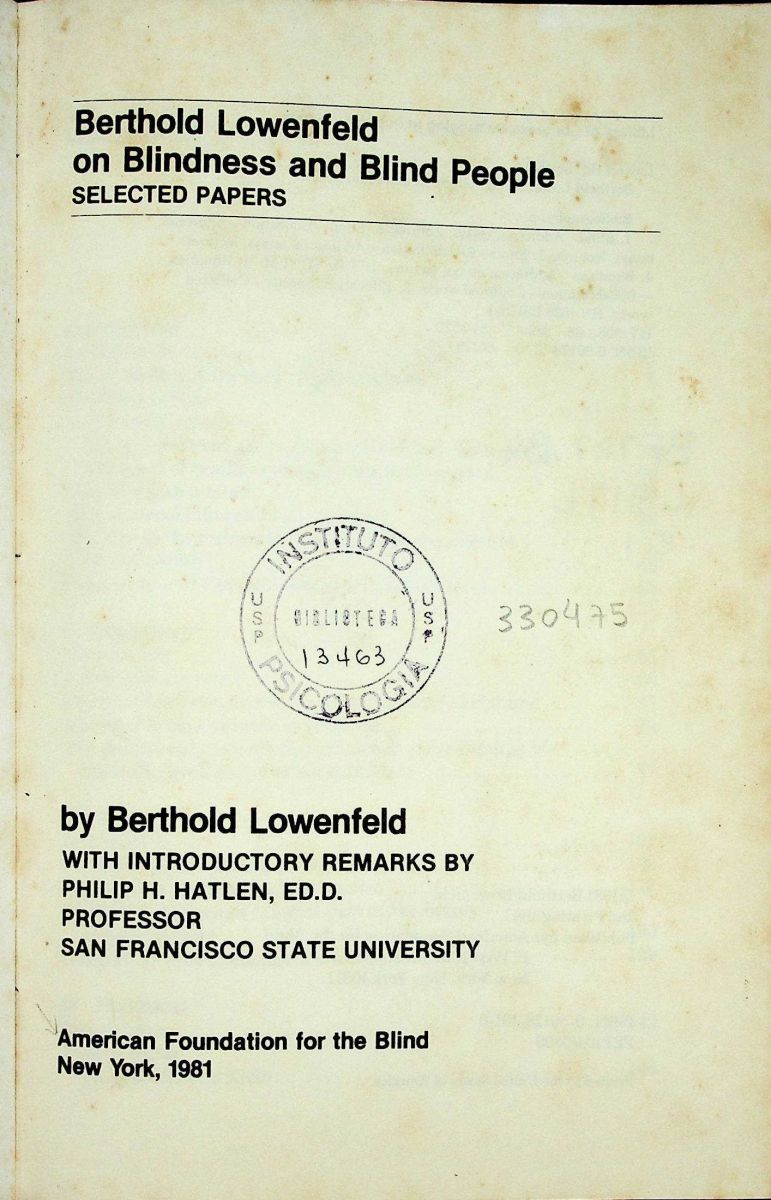 Título: Berthold Lowenfeld on blindness and blind people: selected papers