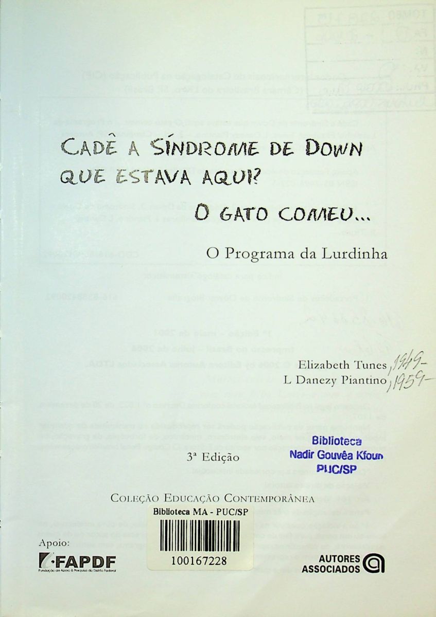Título: Cadê a Síndrome de Down que estava aqui?: o gato comeu …: o Programa da Lurdinha