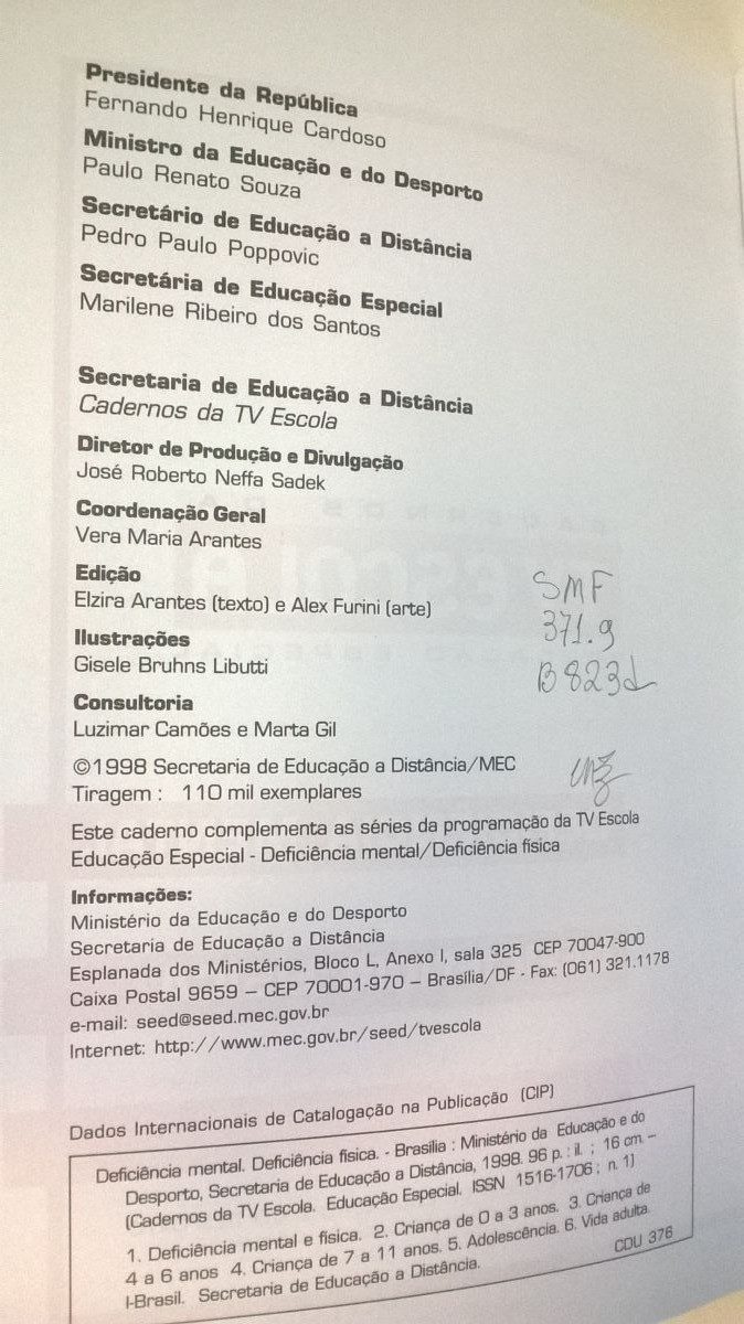Título: Cadernos da TV Escola: deficiência mental e deficiência física