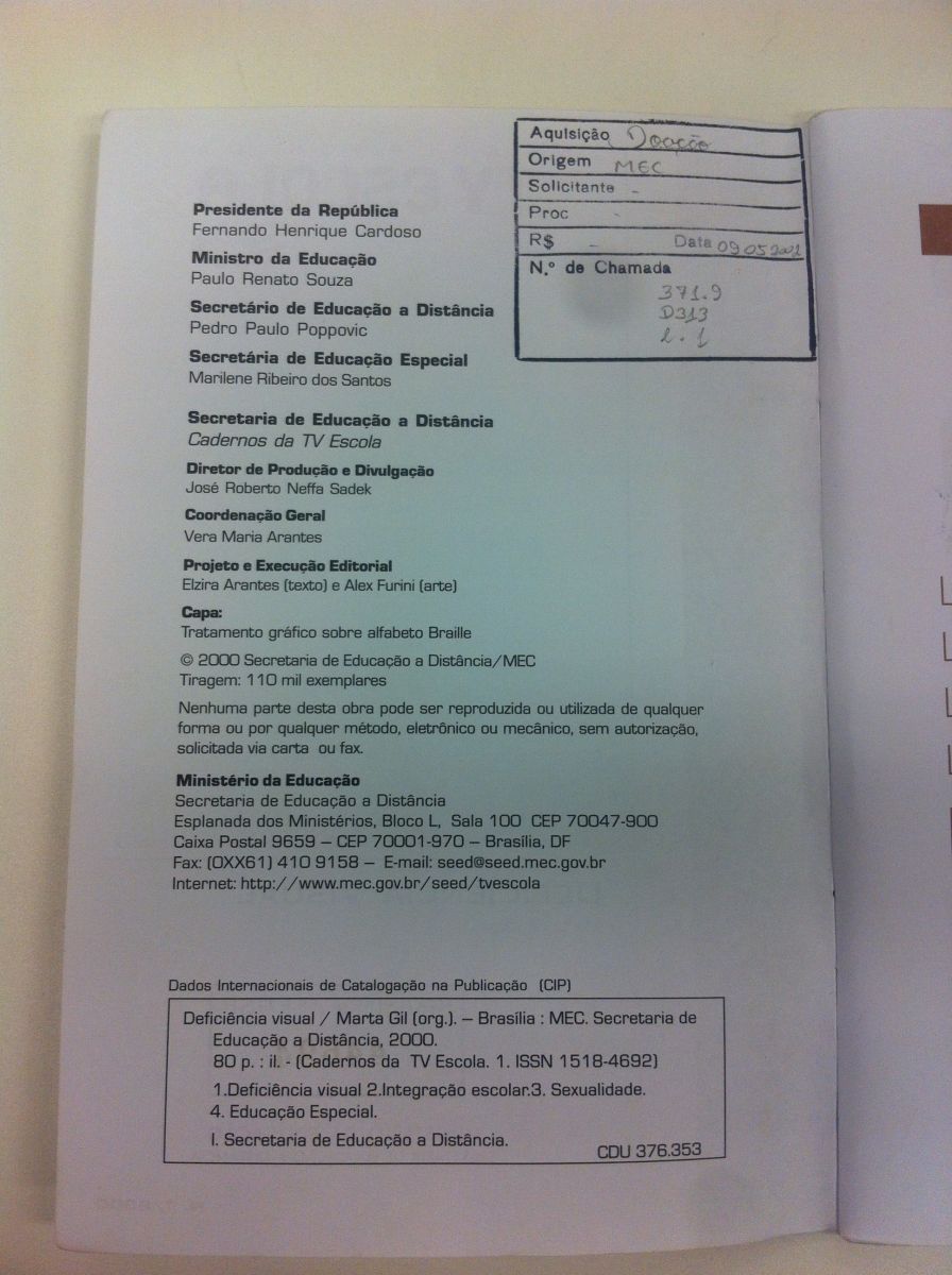 Título: Cadernos da TV Escola: deficiência visual