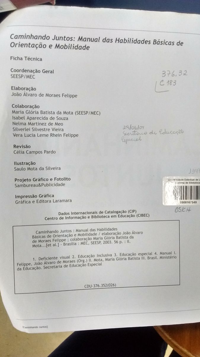 Título: Caminhando juntos: manual das habilidades básicas de orientação e mobilidade