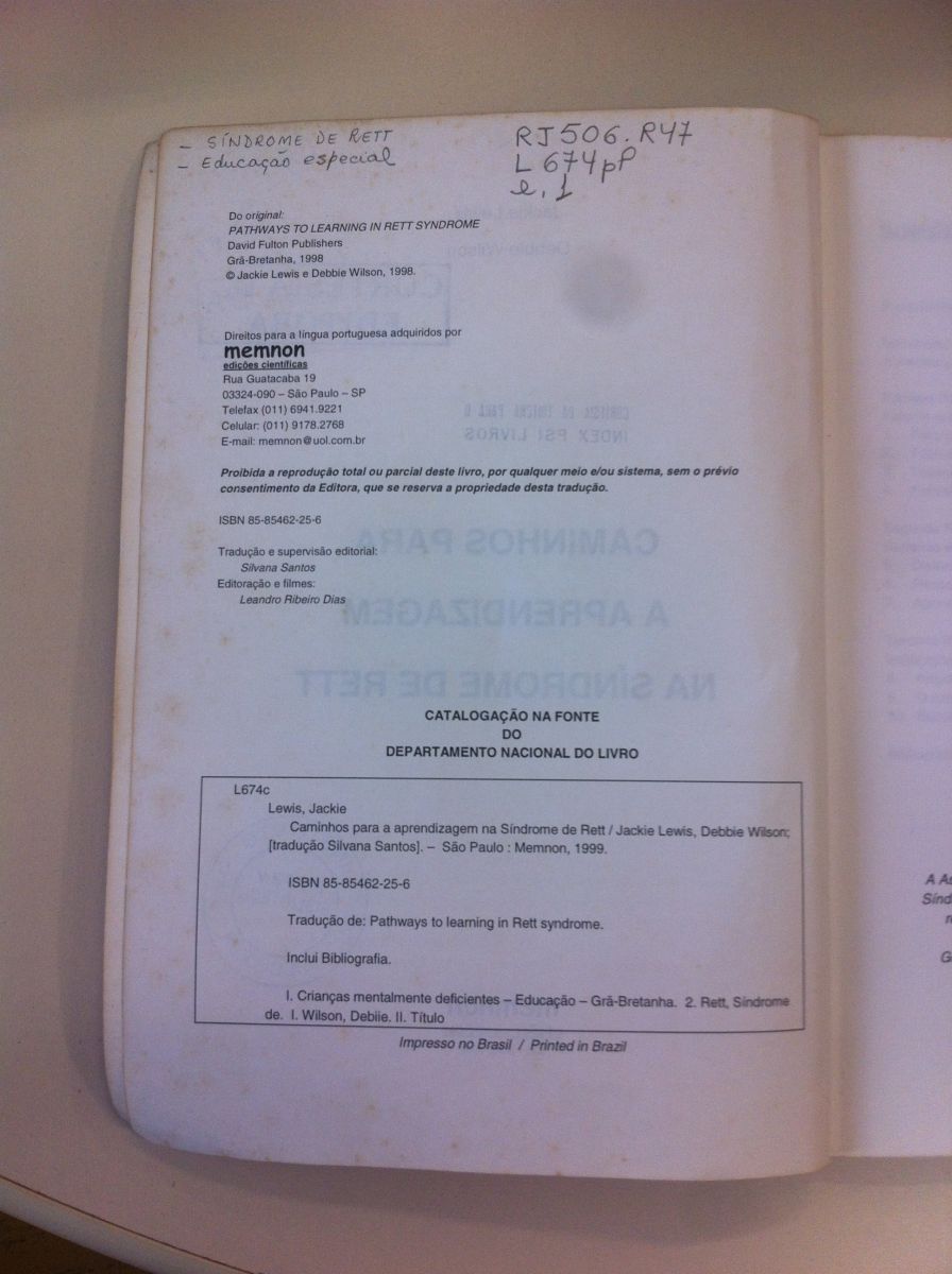 Título: Caminhos para a aprendizagem na síndrome de Rett