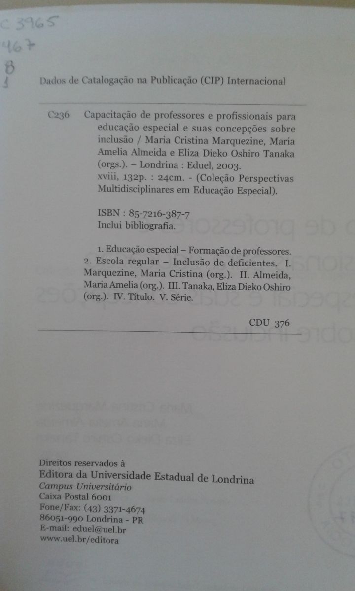 Título: Capacitação de professores e profissionais para educação especial e suas concepções sobre inclusão