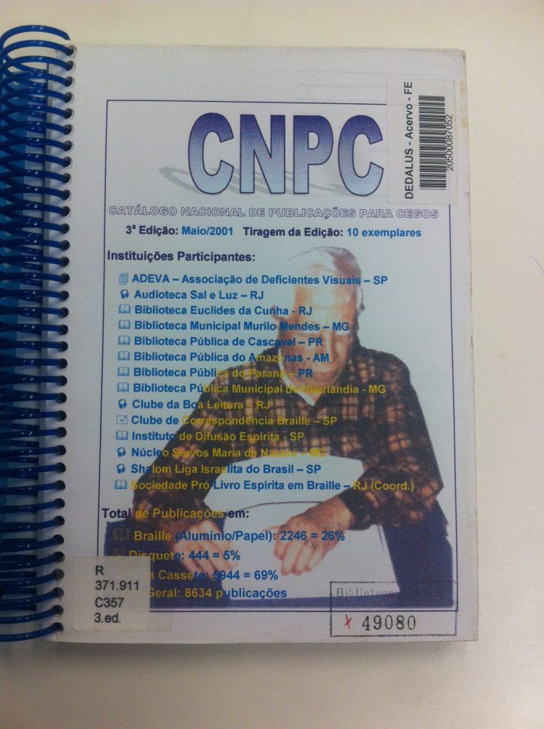 Título: Catálogo nacional de publicações para cegos