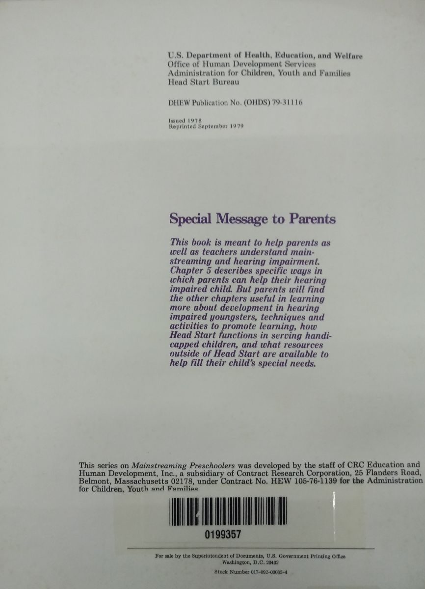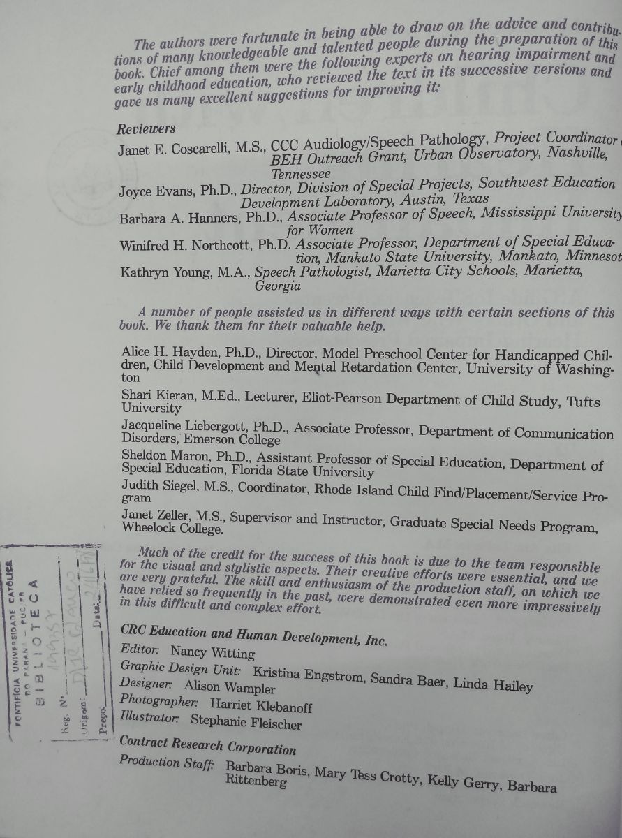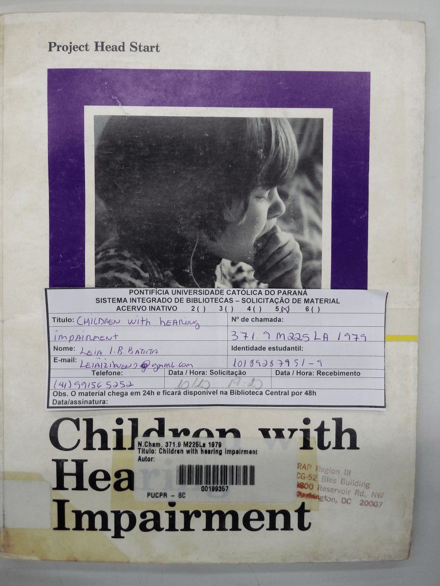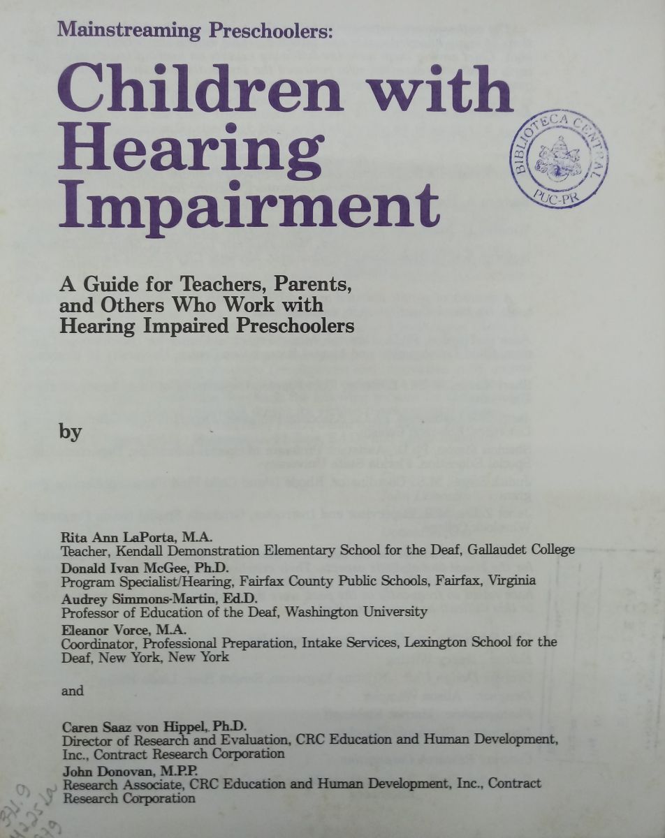 Título: Children with hearing impairment: a guide for teachers, parents, and others who work with hearing impaired preschoolers