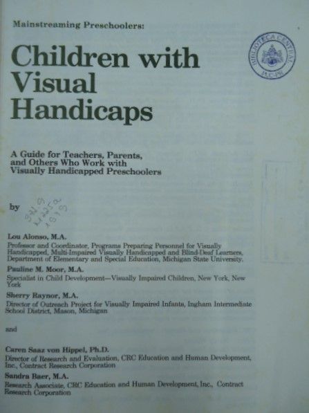 Título: Children with visual handicaps: a guide for teachers, parents, and others who work with visually handicapped preschoolers