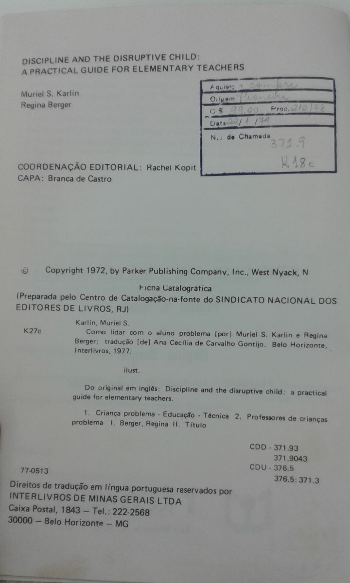 Autor/Organizador: Muriel S Karlin; Regina Berger