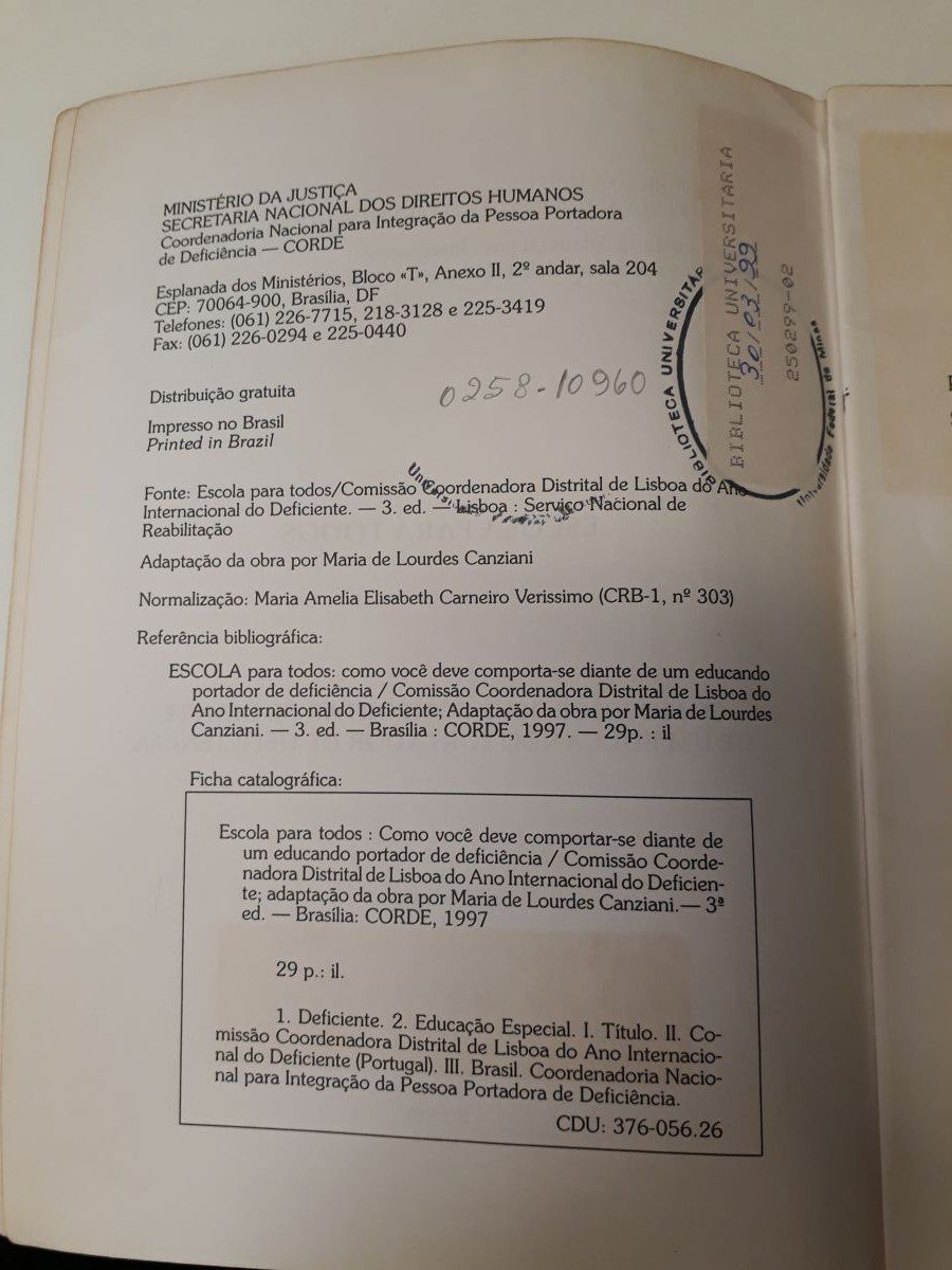 Título: Como voce deve comportar-se diante de um educando portador de deficiencia: escola para todos