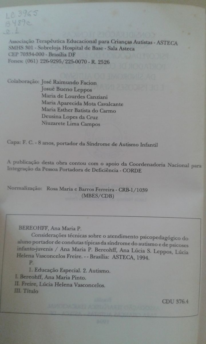 Autor/Organizador: Maria Eloisa Famá D’Antino; Décio Brunoni; José Salomão Schwartzman