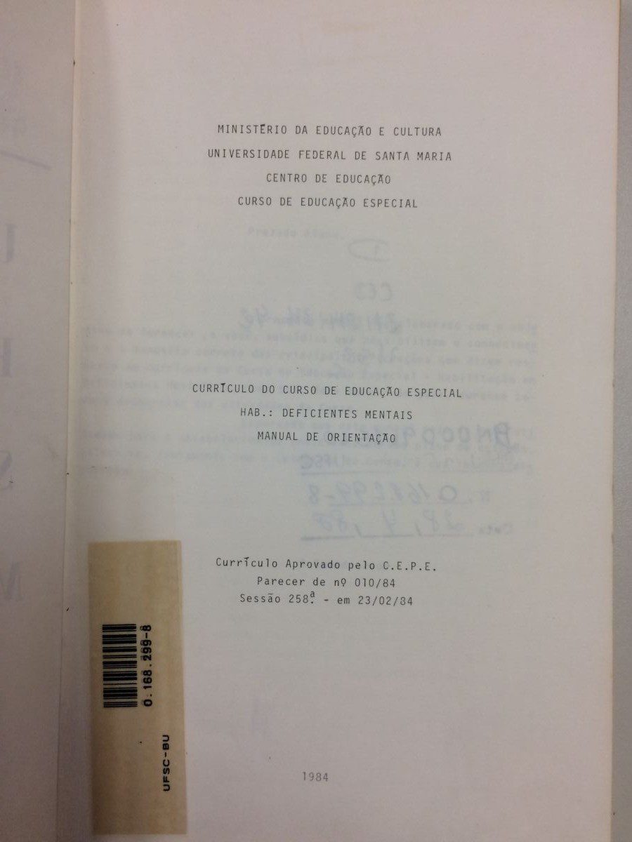 Título: Currículo do curso de educação especial: hab.: deficientes mentais: manual de orientação