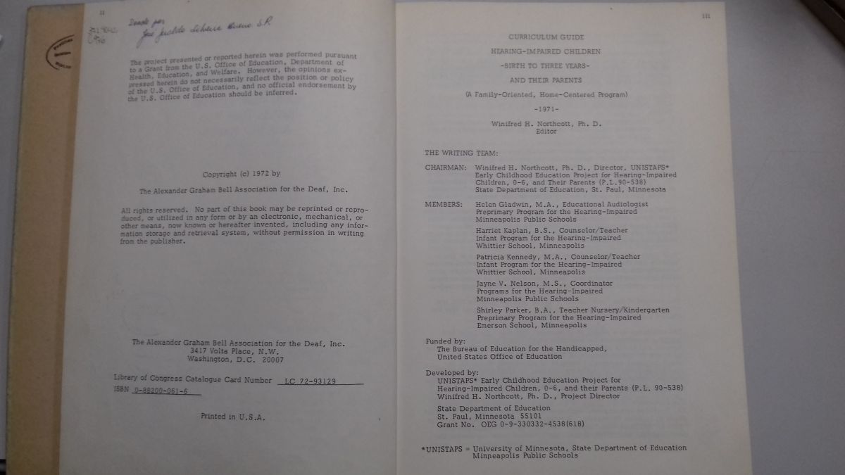 Título: Curriculum guide: hearing impaired children – birth to three years – and their parents