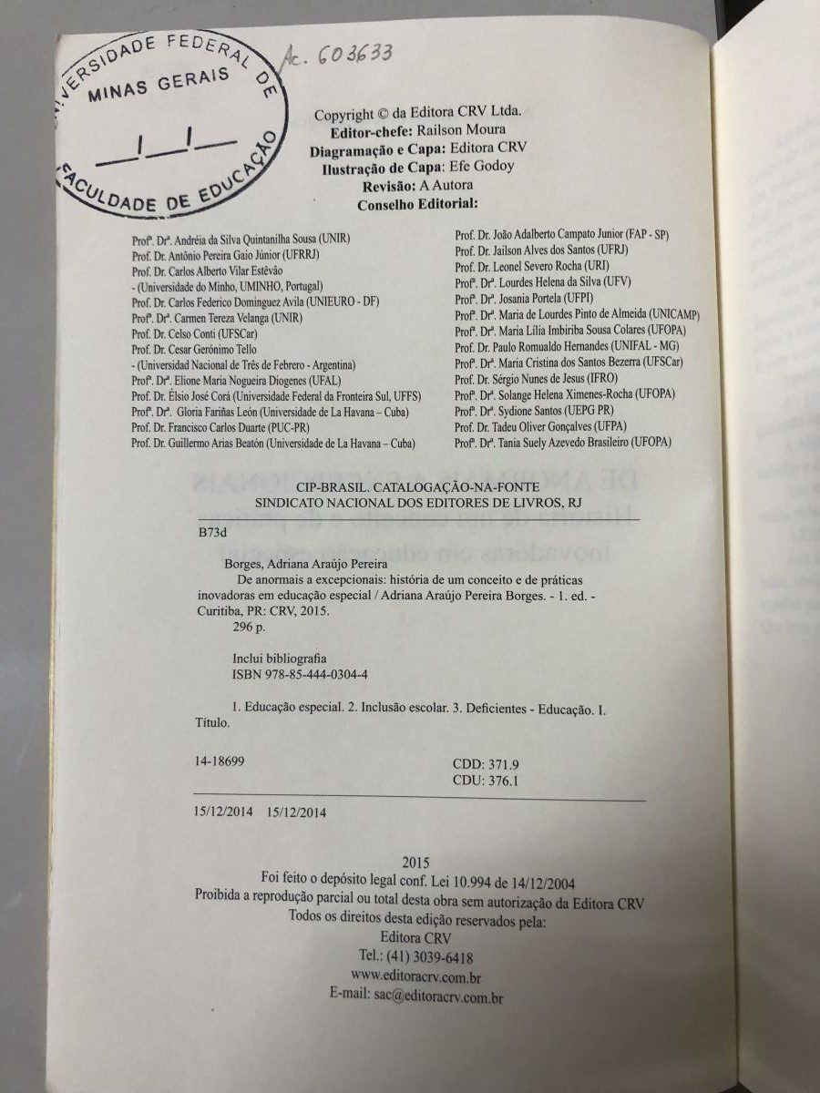 Título: De anormais a excepcionais: história de um conceito e de práticas inovadoras em educação especial