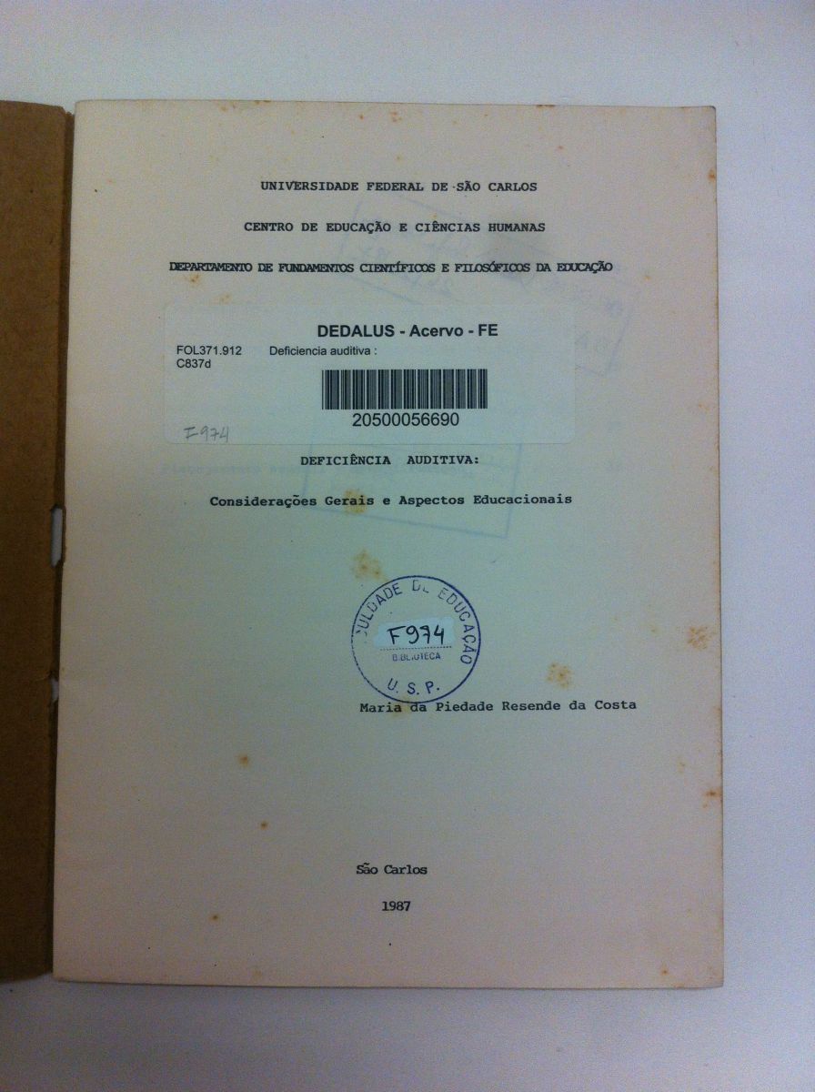 Título: Deficiência auditiva: considerações gerais e aspectos educacionais