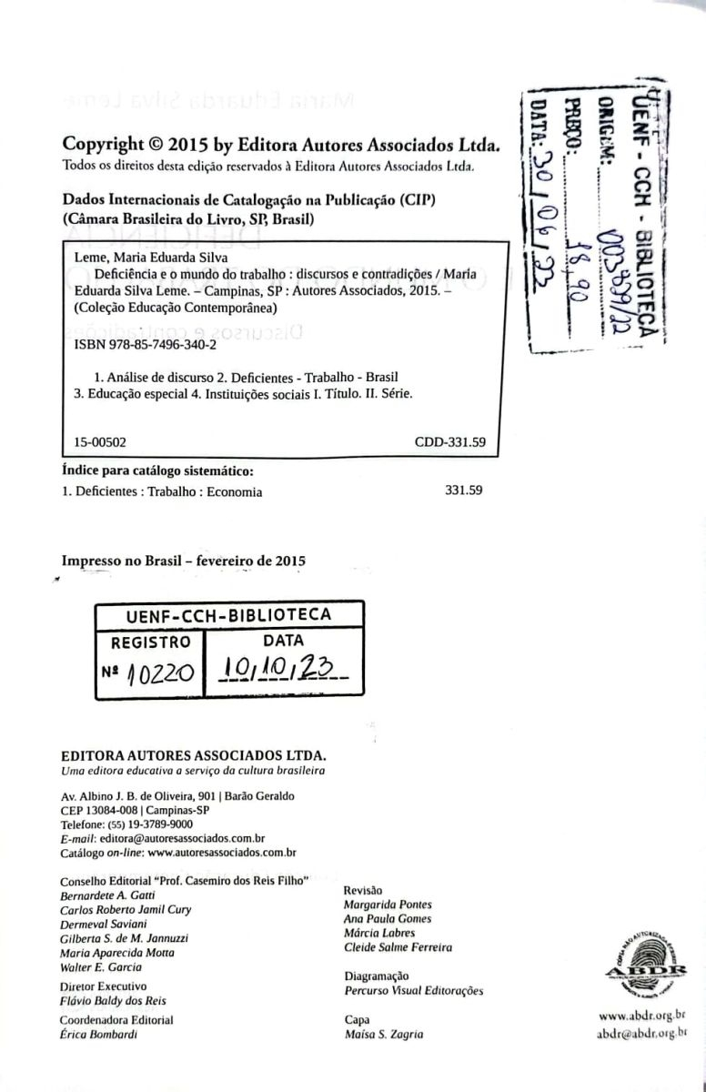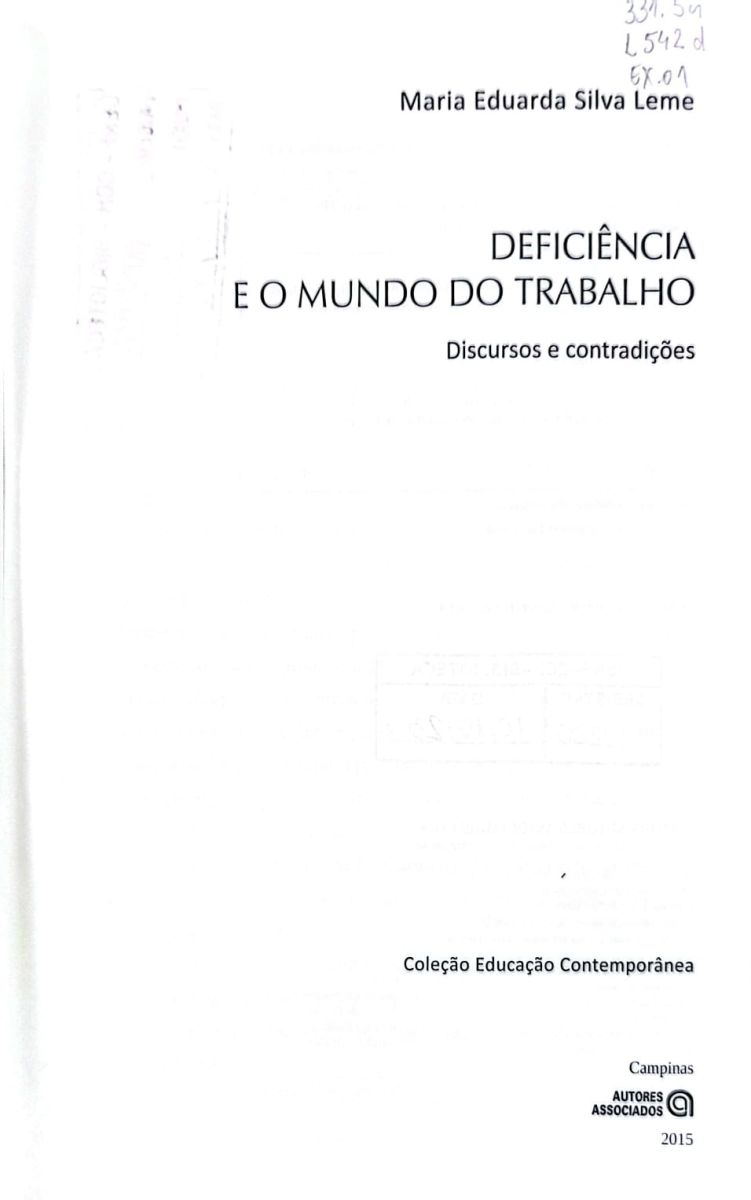 Título: Deficiência e o mundo do trabalho: discursos e contradições