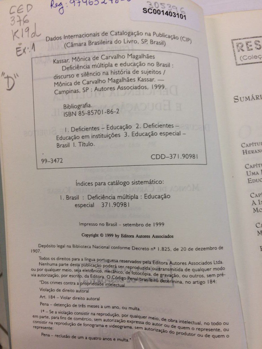 Título: Deficiência múltipla e educação especial no Brasil: discurso e silêncio na história de sujeitos