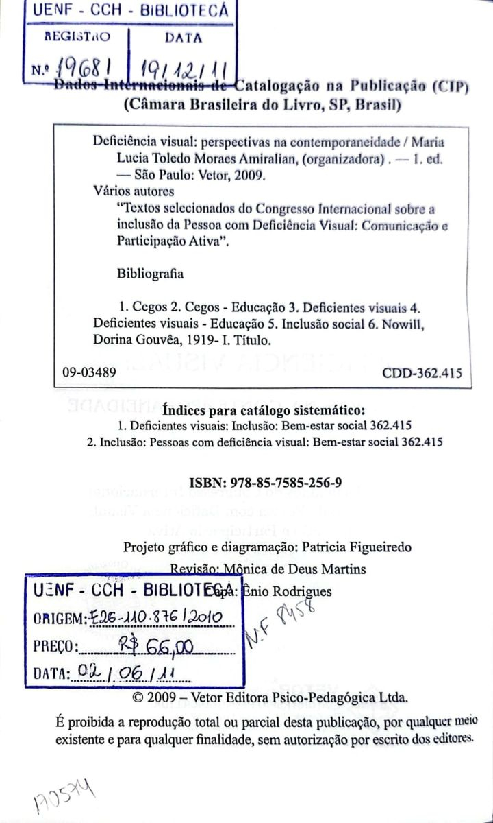 Título: Deficiência visual: perspectivas na contemporaneidade
