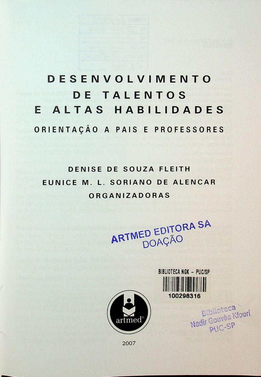 Título: Desenvolvimento de talentos e altas habilidades: orientacao a pais e professores
