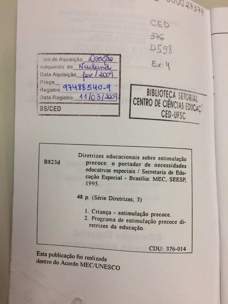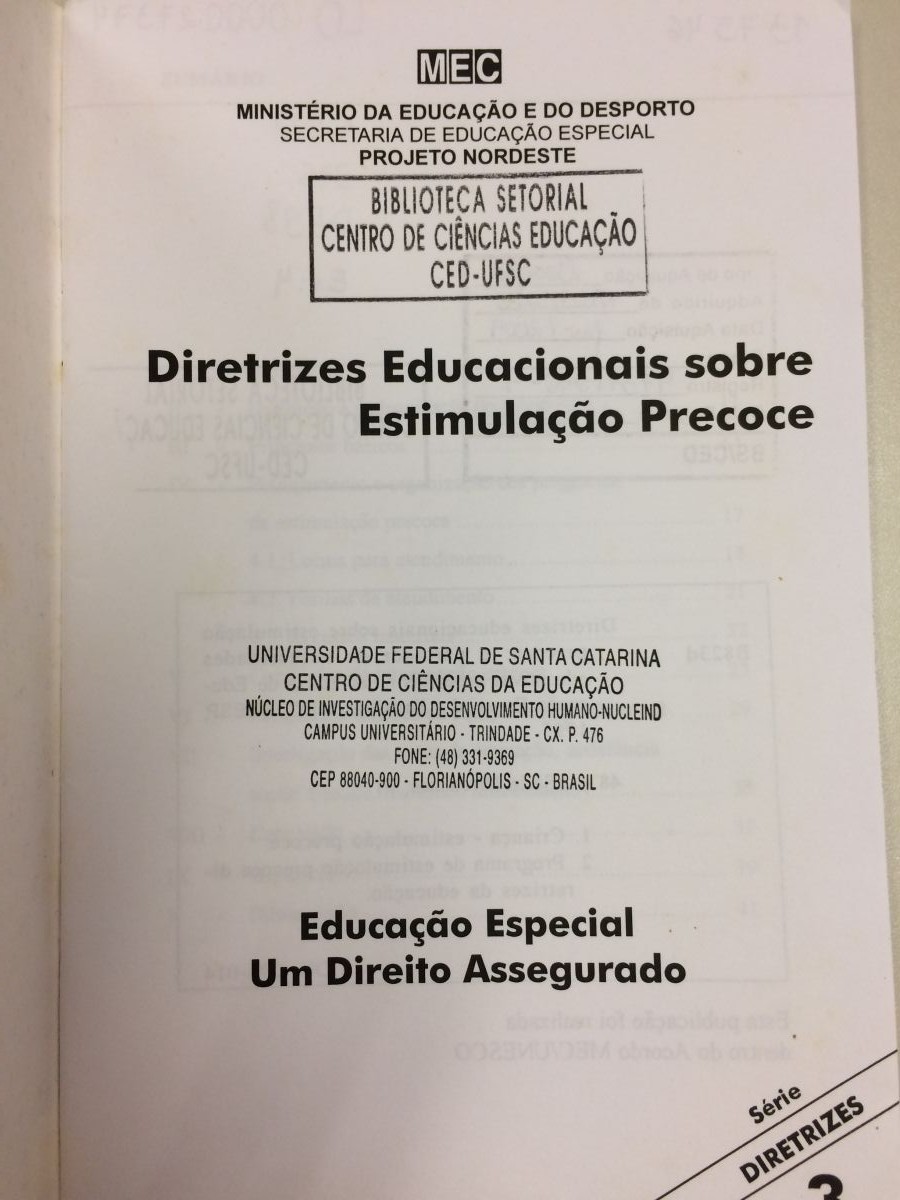 Título: Diretrizes educacionais sobre estimulação precoce: o portador de necessidades educativas especiais