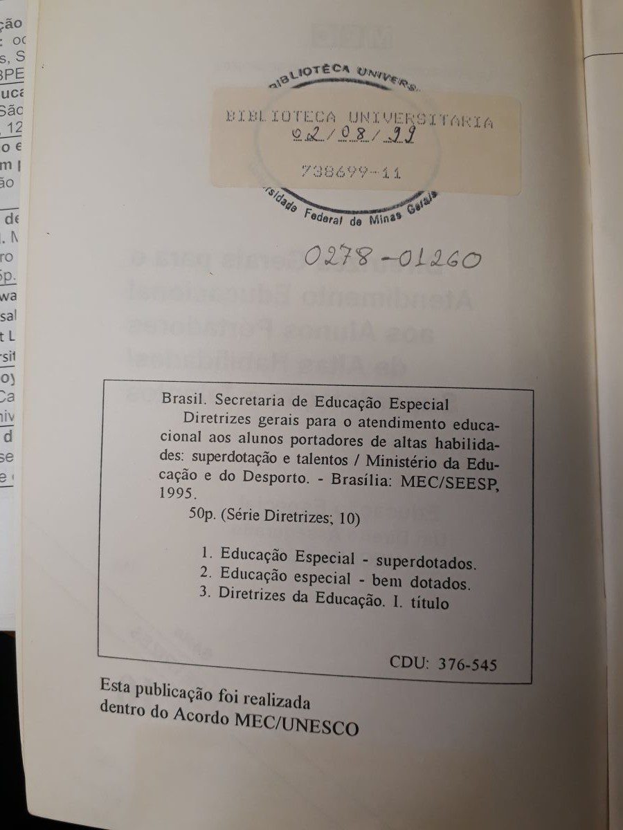 Título: Diretrizes gerais para o atendimento educacional aos alunos portadores de altas habilidades, superdotação e talentos